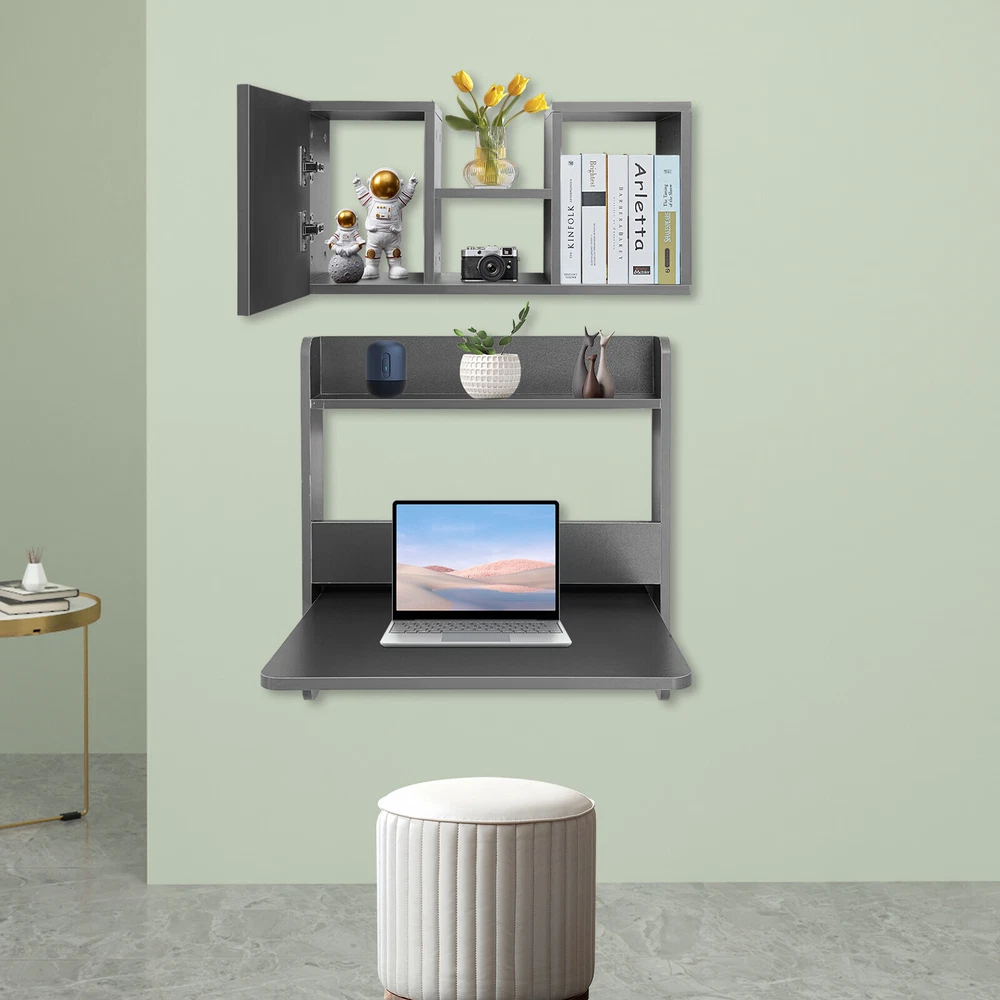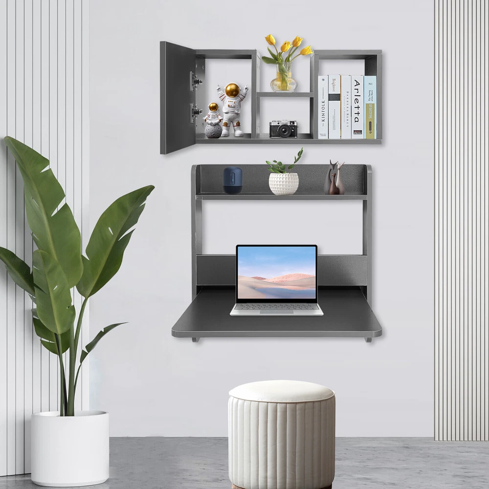 Folding Space Saving Wall Mounted Bookshelf, Fold Down Laptop Desk Workstation Description Description This wall-mounted writing table, with its thoughtful design of space optimization, has become an ideal choice for modern home and compact office environments. It cleverly fixes the desk to the wall, not only saving floor space but also bringing cleanliness and order to limited living or working areas. High-class materials ensure stability and durability, and its nice appearance allows it to easily integrate into various decoration styles. Key Features Build to Last: This product is mainly made of solid wood with a paintless surface, which is odorless, impact-resistant, wear-resistant, and has a long service life. Excellent Load-bearing Capacity: The thickened materials and strong screw fixation allow it to support heavy weight (bookshelf total load-bearing capacity: about 110.23lbs, writing table load-bearing capacity: about 88.18lbs), so you can place your computer or some books (not included) with confidence. Thoughtful Design: The foldable tabletop allows you to create extra space when needed and conveniently tucks away when not in use, providing the balance between functionality and space conservation. Reading Assistant: You can use it to create a creative home library to keep your children company with books and share learning time with them while also making them love reading. Large Storage Capacity: With a multi-tier construction and wide desktop, you can classify and store books according to your reading habits and book types, ensuring that your books are neatly and orderly placed. In addition, the small storage compartment with a door can organize and hide cluttered small items, making your living space neater. Space-saving: The wall-mounted design and multi-tier design can fully utilize the vertical space and expand more storage possibilities, saving you more space in your home. Easy to Install : A simple structure, pre-drilled holes, an English installation diagram, and complete accessories allow you to quickly complete the installation and start using it. Effortless Cleaning : With its simple construction and smooth surface, you can simply wipe off surface dust with a damp rag (not included). Ideal Gift : Beautiful appearance and practical function make it a thoughtful housewarming gift for friends. Buy with Confidence: We stand behind all our guests and look forward to assisting you with your purchase. It is our pleasure to answer your confusion and questions. The end of the story between us is not "we sell and you buy". Details Open Frame: It facilitates easy access to and storage of your books. Rounded Corners and Edges: The corners are rounded and smooth to reduce abrasions from collisions and improve safety. Practical Triangle Brackets : The triangular brackets made of steel with a baking paint process are extremely stable and ensure a high load-bearing capacity. Application It can be widely used in the home, living room, office, study, dormitory, coffee shop, milk tea shop, and other places for storing books, magazines, collectibles, stationery, photos, ornaments, small potted plants, and other items. Specifications Color: Grey Style: Modern Material: Solid Wood, Steel Process: Baking Paint(Steel Brackets) Shape: Rectangular Assembly Required: Yes Mount Type: Wall Mounted Indoor/Outdoor Usage: Indoor Bookshelf Total Load-bearing Capacity: About 50kg/110.23lbs Table Load-bearing Capacity: About 40kg/88.18lbs Bookshelf Size: 80*18*30cm/31.5*7*11.8in Overall Writing Table Size: 60*60cm/23.6*23.6in Tabletop Width: 36cm/14.2in Gross Weight: 16kg/35.27lbs Net Weight: 15.2kg/33.51lbs Package Size: 60*46*12cm/23.6*18.11*4.72in Package Included 1* Wall Mounted Bookshelf 1* 2-tier Wall Mounted Writing Table 1* English Installation Diagram All Accessories for Assembly Notes Please carefully check if the size is suitable before placing an order. Please note that this product does not include books and other display items. Please note it does not apply to plaster walls. The product requires holes to be punched for installation. Please note that this product should not be exposed to the sun or immersed in water as this will damage the product. Please allow the slight color difference caused by the shooting light and 1-3cm error due to manual measurement, and make sure you do not mind before you order. Payment Delivery details Terms of sales About us Contact us Payment We accept ebay payment 。 Fees such as import duties, taxes are not included in the item price or shipping costs. These charges are the buyer's responsibility. Delivery details Shipping: 2-9 working days to: USA Terms of sales We maintain high standards of excellence and strive for hundred percent customer satisfaction. Feedback is very important to us. We hope that you contact us immediately before you give neutral or negative feedback, so that we can address your concerns. It is impossible to address issues if we do not know about them! About us Your satis faction is our ultimate goal. We work hard to earn your trust and future business. Our certified technicians have tested each item before shipping. The unit comes with 1 year limited warranty on all manufacturing defects. a) If you receive a defective item, you may return it or ask for a discount. Please contact us within 14 days after you receive the package. b) What you returned must be intact and in its original packaging as re? u. Customer is responsible for shipping costs of the returned item. c) We will cover the cost of shipping back t with the shipping rate indicated in the registration page. We will send you a new unit or refund the full payment you paid. Thank you. Contact us Business Hour Business Hour: Monday To Friday: 8:30 AM to 5:00 PM (Beijing China time) Due to time zones, our reply to your questions may not be immediately. But within above working time, we will reply your email within 24 hours. If it's non-workdays, please kindly be patient and w
