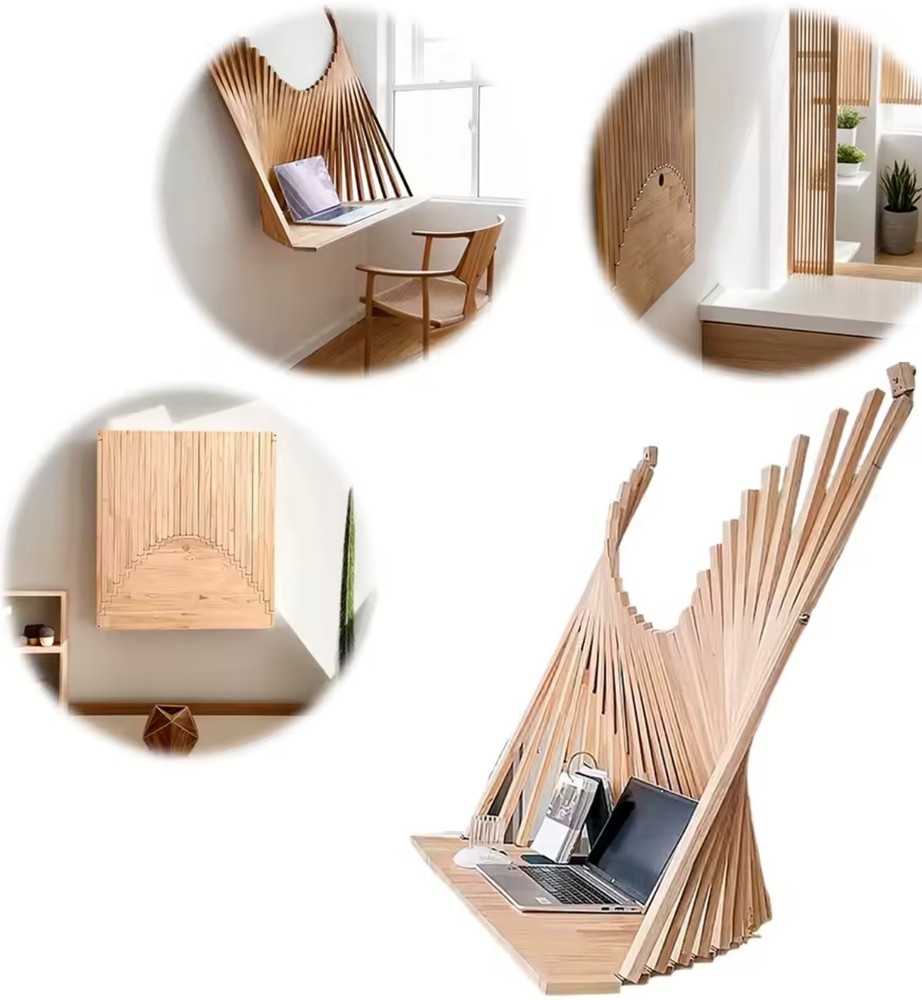 Modern wall-mounted folding desk made from solid wood, designed to save space while adding a sleek, stylish touch to any room. This invisible, foldable table easily mounts to the wall and folds away when not in use—perfect for small spaces, home offices, bedrooms, or study areas. Durable, functional, and space-efficient.