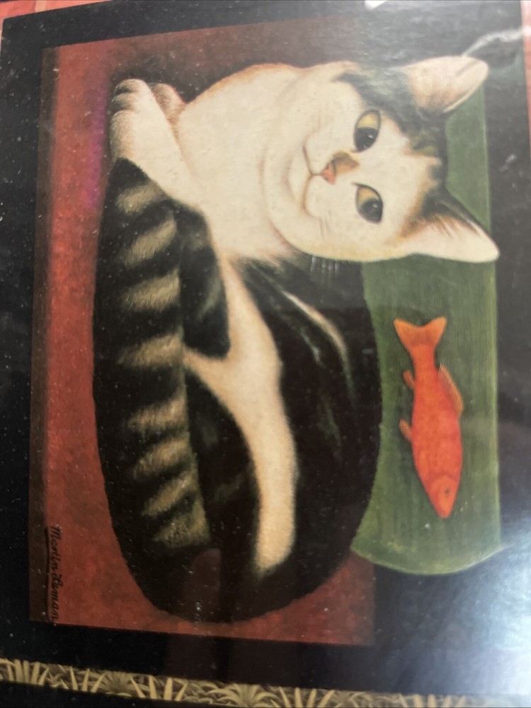 Framed Martin Leman Cat Print With Fishbowl And Cute Cat