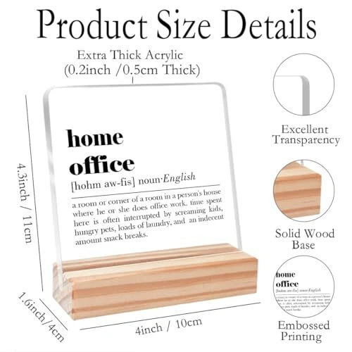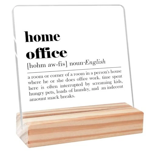 Menu 1. We require immediate payment. 2. We currently accept payment via eBay managed payments only. 3. Once payment is cleared, we will dispatch your shipment within 1-3 business days. Please refer to the "Shipping" tab for more information regarding shipping speed to your destination. Funny Home Office Decor,Work from Home Gifts for Coworkers Friend,Funny Home Office Cubicle Gifts for,Office Humor Quotes Desk Decor,Home Office Definition Sign Acrylic Plaque Product description Creative Design:This beautiful office home acrylic plaque with wooden stand sign is composed of exquisite patterns and interesting language,generous and beautiful, the combination of funny images makes this wooden box sign more distinctive,which brings good visual enjoyment.Add comfort to your home and office space,and let you have a good mood every day! Appropriate Size-Measures4"x4" Square Acrylic,L4"x W2.3"x H0.8"Wooden Stand High Quality-This acrylic plaque with wooden stand sign decor is made of thick acrylic material,sturdy and durable,fine workmanship,the holder is made of wood,not easy to deform or break, easy to use. Simple and Easy to Use-Simply insert the acrylic decorative plaque into the slot in the wooden base and you can place it w you want it to be decorated.This is a easy and effective way to decorate and add interest to your home room office space! Good Gift Ideas-This office acrylic plaque with wooden stand sign desk decor features an interesting theme and text design, making it your personalized and heartwarming gift choice.Perfect as a funny gift,retirement gift,thank you gift,farewell gift,new work gift,humorous gift, office gift, inspirational gift, motivational gift,and birthday gift for family,boss,leader,friends,and colleagues.This is the best way to express your concern for others. PLEASE MESSAGE US IF YOU HAVE ANY OTHER QUESTIONS, AND MANY THANKS FOR READING ALL OF THIS. Copyright ©#. All Rights Reserved.