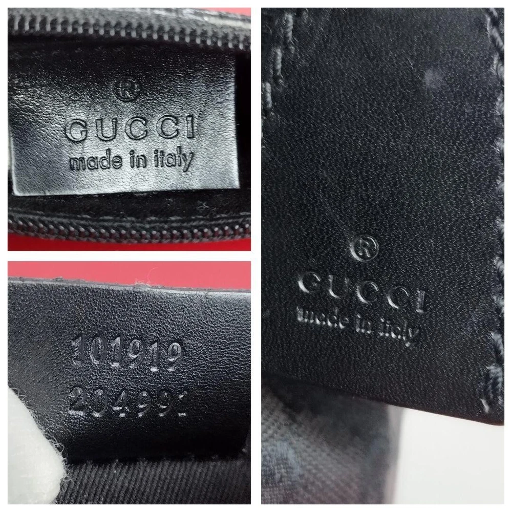 Department: Women Style: Tote Theme: Designer Features: Monogrammed Lining Material: Nylon Lining Color: Black Accessories: Pouch Brand: GUCCI's Pattern: Monogram Handle/Strap Material: Leather Vintage: No Handle/Strap Color: Black Hardware Color: Gold Exterior Color: Black Size: Medium Material: Canvas Country/Region of Manufacture: Italy Exterior Material: Canvas Character: N/A