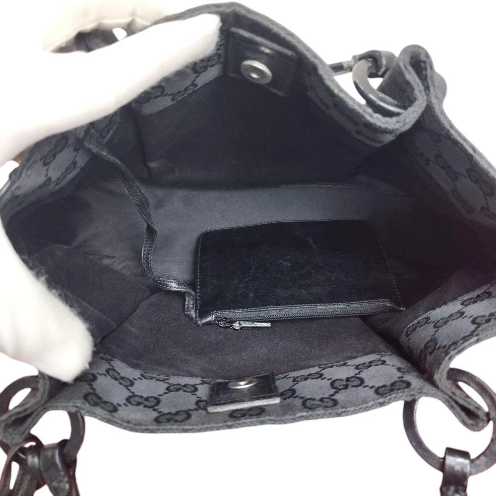 GUCCI's Black GG Canvas and Black Leather Tote Bag Purse W/pouch Used