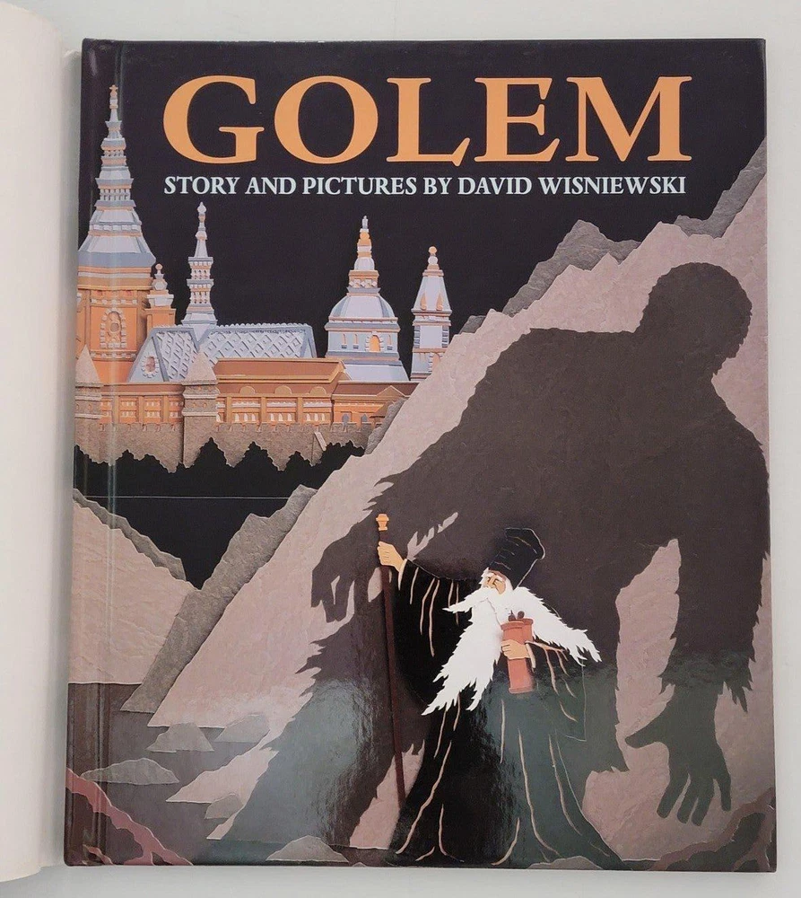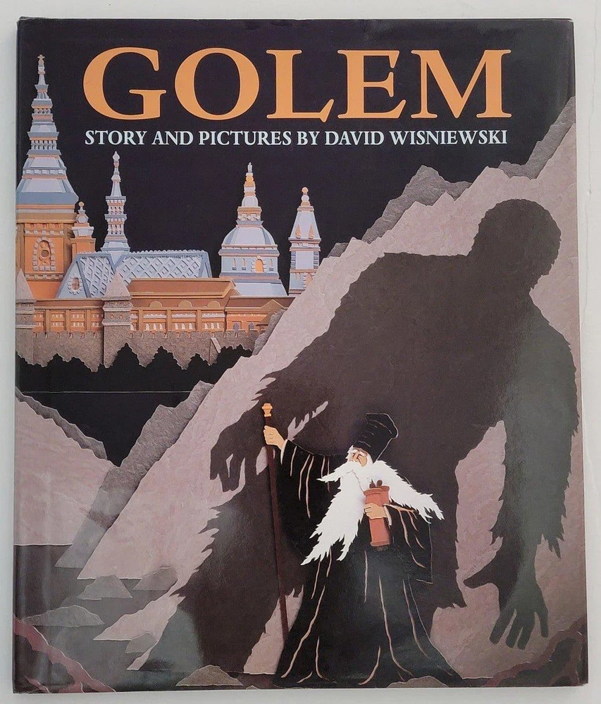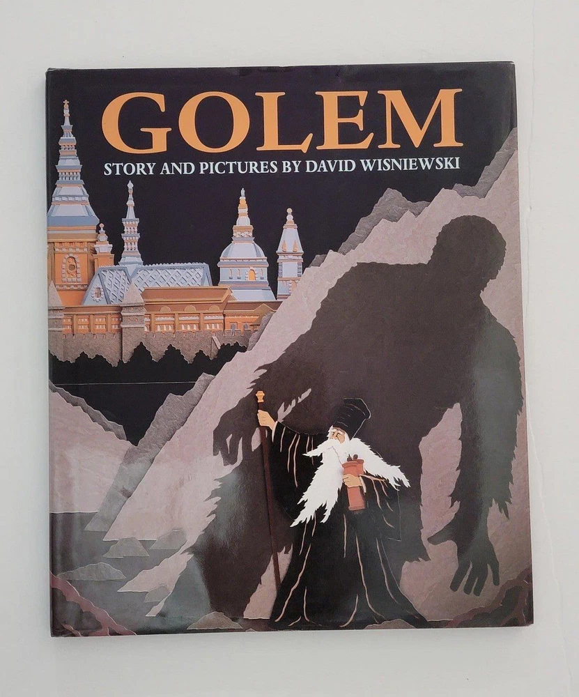 Golem Hardcover Picture Book by David Wisniewski. Golem is a 1996 picture book written and illustrated by David Wisniewski. With illustrations made of cut-paper collages, it is Wisniewski's retelling of the Jewish folktale of the Golem with a one-page background at the end. Book has the same wraparound image as the dust jacket. Book is in like new condition. Dust jacket has a little wear. A winner of the Caldecott Award. TAGS: books fiction Scifi fantasy folktale fairy tales legends Jewish Hebrew golem Hardcover Picture Book hardback