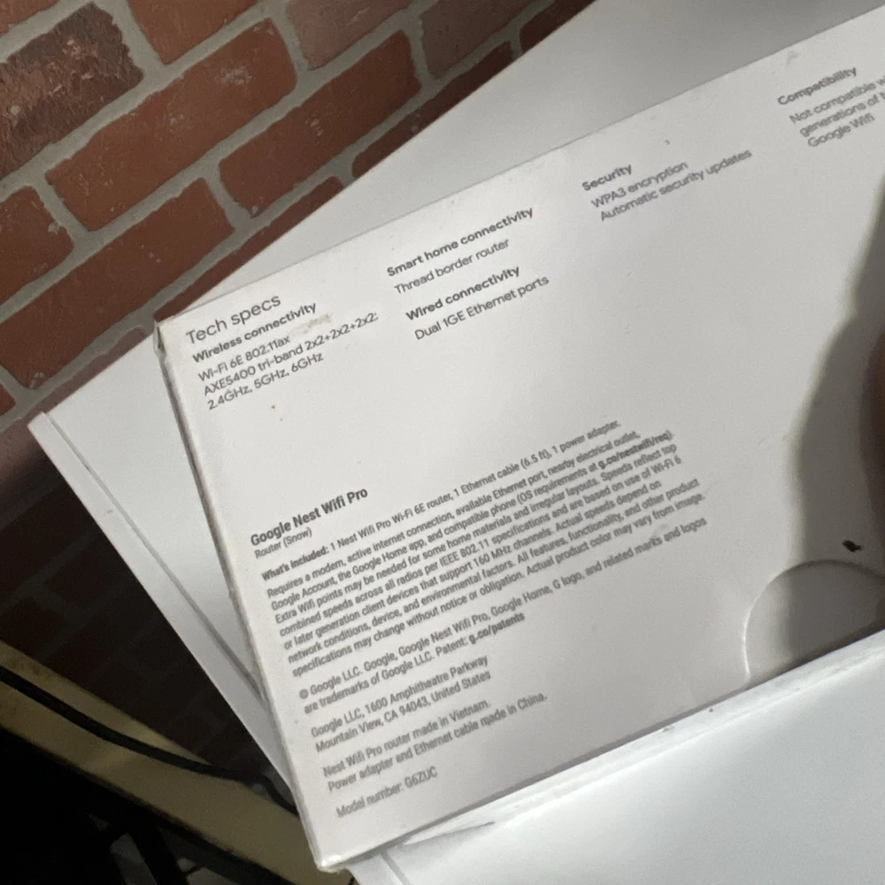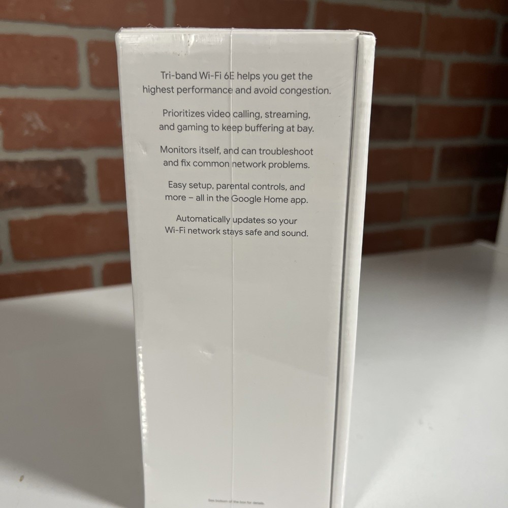 The Google Nest WiFi Pro is a high-performance Wi-Fi 6E mesh router in white color, designed by Google. It features three bands with MU-MIMO technology, providing fast and reliable wireless connectivity for your devices. With two LAN ports for wired connections, the Nest WiFi Pro offers a seamless and secure internet experience for your home or office network.
