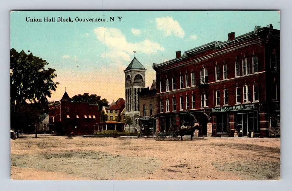 Gouverneur NY-New York, Union Hall Block, Antique, Souvenir Vintage Postcard