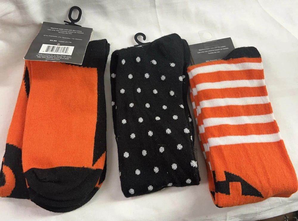 Country/Region of Manufacture: Unknown Vintage: No Pattern: Halloween Season: Fall Product Line: Women Manufacturer Color: Black Size: 4-10 Number in Pack: 2 Pairs Sock Length: Knee High UPC: 0195602022342 Color: Black Size Type: Regular Style: Crew Socks Handmade: No Shoe Size: 4-10 Theme: Halloween Occasion: Casual Material: Polyester Brand: Happy Halloween gtin13: 0195602022342 Toe Style: Full Toe Garment Care: Machine Washable Department: Women Personalized: No Type: Socks Features: Lightweight