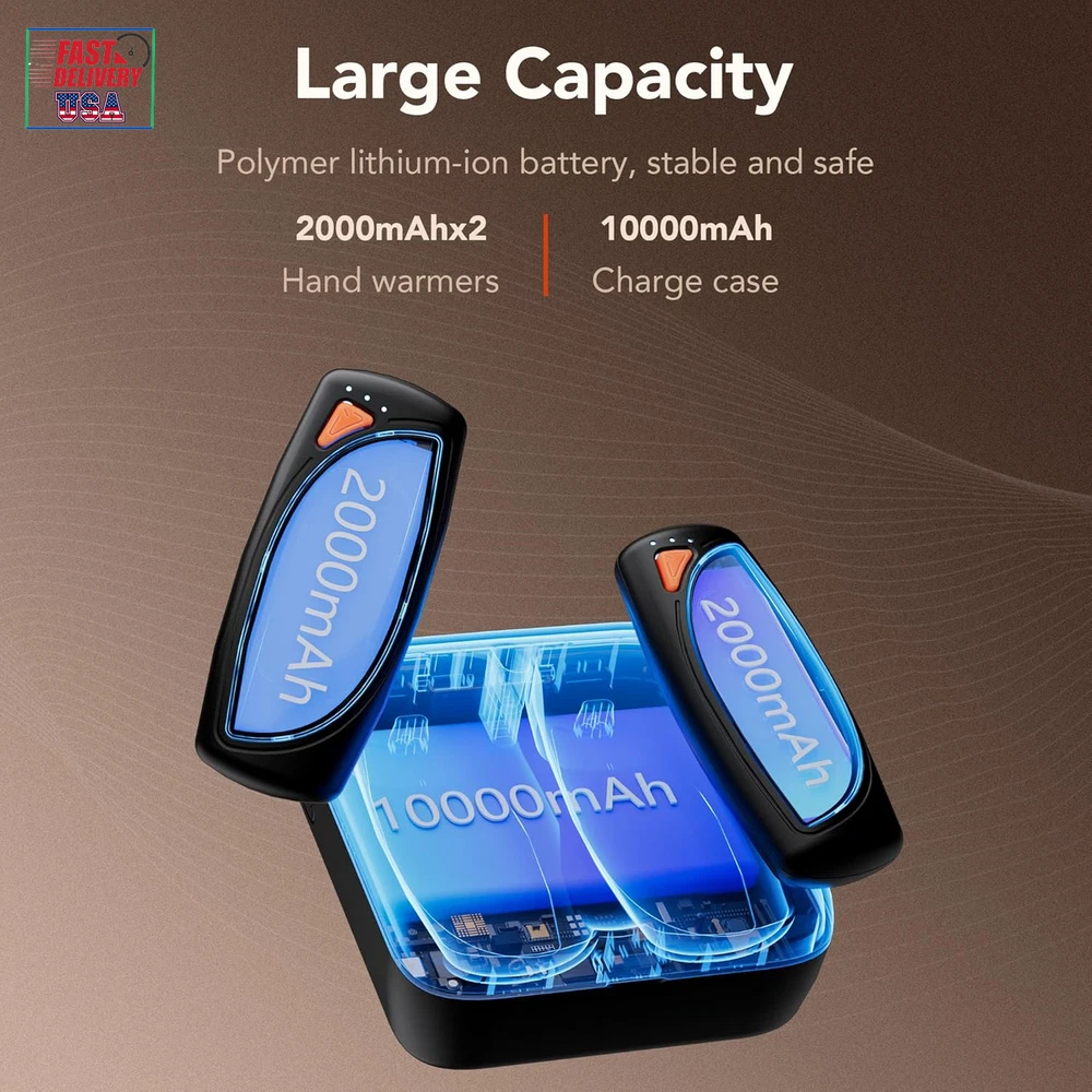 Store New Arrivals Add to Favorite View Feedback Contact Hand Warmers Rechargeable 2 Packs, Double Sided Heating with AI Charging Case, 14000Mah Electric Hand Warmer Long Lasting, Portable Heater Gifts for Christmas,Outdoor,Camping,Hunting Gear Description Reusability Rechargeable Part Number N2 Warranty Description 1 Year Item Dimensions LxWxH 4.25 x 3.78 x 1.69 inches Power Source Battery Powered Battery Capacity 10000 Milliamp Hours Color Silver Included Components Hand warmer*2, Charging case, User Manual in 5 languages, Type-C cable Material Aluminum, Acrylonitrile Butadiene Styrene Package Weight 0.43 Kilograms Item Weight 420 Grams Suggested Users unisex-adult Use for Hand Model Name N2 Recommended Uses For Product Camping Model Year 2024 Item Package Dimensions L x W x H 5.16 x 4.17 x 2.05 inches Size 14000mAh 2024 Newest Technology: Charging case-An industry first for hand warmers, this revolutionary combines a high-capacity 10000mAh battery case with an innovative design. Its practical and stylish design makes it easy to carry while keeping your hand warmers charged and ready. Up to 36 hours usage time, perfect for all-day outdoor adventures or cold weather, it ensures you'll stay warm and comfortable with ultimate convenience. Small, Double-Sided Heating: These portable hand warmers with dual heating surfaces to deliver consistent warmth on both sides. Designed with a small, lightweight body, it's more energy saving and ideal for both adults&kids to hold easily and comfortably AI Temperature Management: 1s fast heating, 3 temperature settings. The AI system equipped with built-in sensors continuously monitors and adjusts the temperature to avoid overheating, providing a safe and comfortable experience. Constructed from high-quality, heat-resistant materials, the hand warmer is designed to be safe to touch and durable for long-term use. 14000mAh total: Set of two, Each hand warmer is 2000mAh, plus 10000 mAh charging case. An impressive gift: With unique design, long usage time, portable case, this hand warmer will be the best gift choice for a family member, a friend, a colleague, or a loved one Product Description The video showcases the product in use. The video guides you through product setup. The video compares multiple products. The video shows the product being unpacked. 1 Portability 2 Fast Charging 3 Double Sided Heating A remarkable gift for him These Hand Warmers with: Long Battery Life, Portability, and Fast Heating features. It offers comfort, convenience, and reliability, making your outdoor activities more enjoyable A warm-hearted gift for her A lovely gift for kids What makes COTOP Hand Warmer different from traditional ones? COTOP Hand Warmer with a portable charging case, total 14000mAh battery, and 1S fast heating up features, meeting the needs of all kinds of occasions, increasing its usability and value. What certifications and standards does COTOP hand warmer have? COTOP have UL, FCC, UKCA, CE, PSE certifications. Electrical safety certifications (to make sure there is no leakage or overheating) and battery safety certifications (the performance, stability, and safety of charging and discharging). Why does this hand warmer need a charging case? 1.Extended battery capacity ensures that you always have a source of warmth. 2. Organization and Storage: keep the hand warmer neatly stored in the case, making it easy to find and use when needed. 3.Protect hand warmers from damage How long does it need to be charged? How long can it be used? The full charge for the case and hand warmers will be 3-4 hours. It will last 6-36 hours depending on the weather and the hand warmer's temperature. What if I received a defective product? COTOP offer a 1-year replacement for any quality issues. ABOUT US We offer the best prices around on high quality products. Our E-store includes media such as books, movies, music and games while offering electronics, toys, sporting apparel, clothing, tools, general home, garden items and more. SHIPPING We are always working hard to ensure your package arrives as soon as possible. Please understand that some factors like weather, high postal traffic, and the performance of shipping companies are outside of our control. We offer free shipping to the lower 48 states and ship within 2 business days of payment, usually sooner. We do not accept P.O. Boxes. Please provide a physical address. For shipping outside of the continental USA, we only use eBay's Global Shipping Program.The item is shipped to KY and then sent to the rest of the world. International customers are responsible for all duties and taxes. Continue to check out in order to calculate costs for shipping the item to your country. Messages regarding eBay's Global Shipping Program MUST be directed at eBay EXCLUSIVELY. RETURNS We offer a 30-Day Return Policy on items which you are not completely satisfied with. You have the option for a full-refund or an exchange of the item. No returns are available on items shipped outside of the USA. PAYMENT We accept PayPal. CONTACT US This page content is yet to come Please ad us to your favorite seller and visit again later Thank You CUSTOMER SATISFACTION We try our very best to make sure every customer is completely satisfied. If there's a problem, message us! We're happy to help. WE ACCEPT Copyright © 2021 AutoDS. | All Rights Reserved