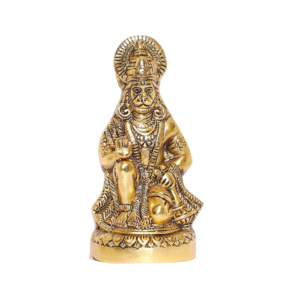 DESCRIPTIONS - Hanuman Ji Statue Sitting In Metal Hanuman Ji Idol Bajrangbali Murti Gift Article Decorative Showpiece, Multicolour, 1 Piece. Product Dimension - 7.5L x 7.5W x 16H Centimeters Pattern - Solid