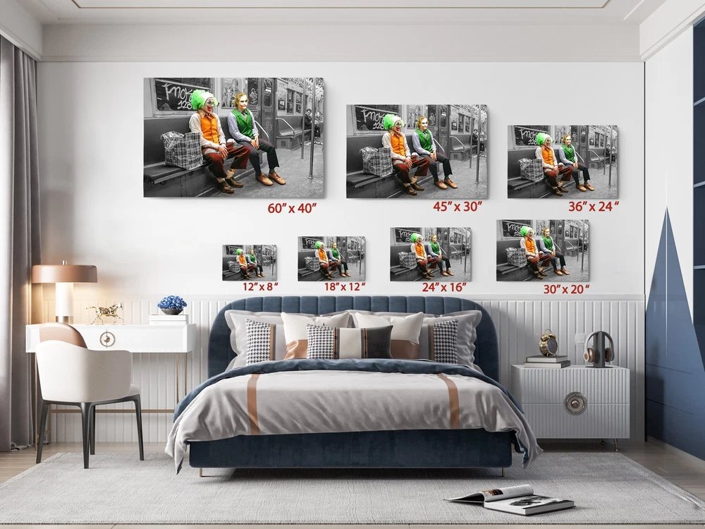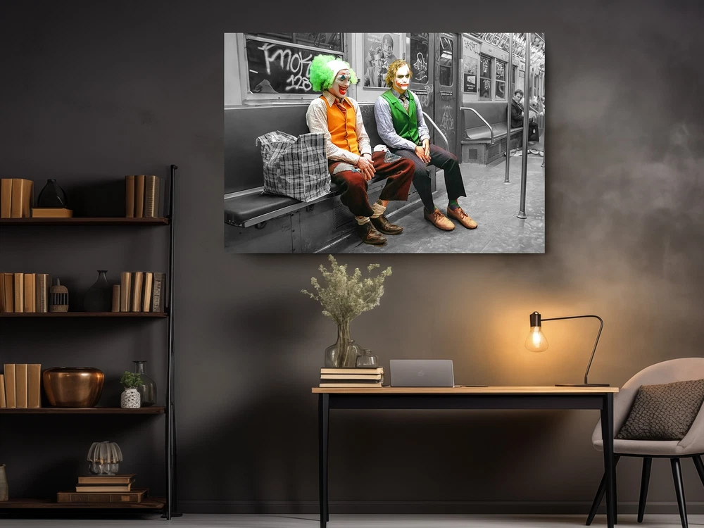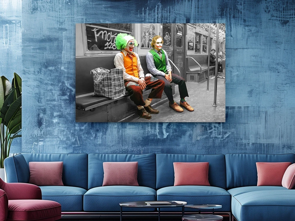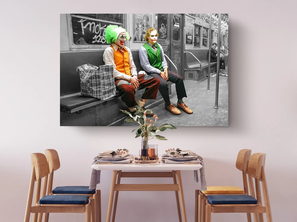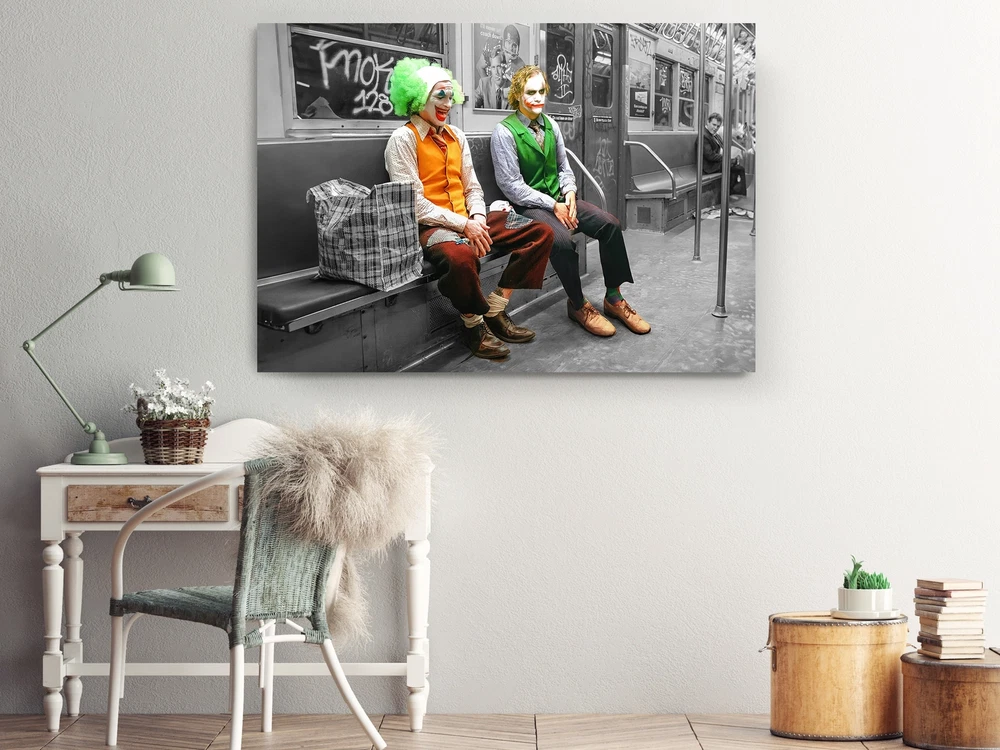 Happy Villains Smiley Face Joker meets Joker in Train, Canvas Print