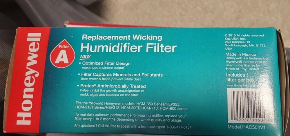 Thank you for viewing this listing. Please reach out to us directly if you have any questions you may have. Please Check out my Other Items. Note that we offer free, no question asked returns for up to 30 days after purchase. If you're not happy with the item for any reason after purchasing, simply open a return, send it back for free, and we will refund your money in full. When you receive your item, please leave us feedback! Thanks, and have a great day The Honeywell HAC504 Series Humidifier Wicking Replacement Filter A is a red pleated filter designed for humidifiers. It has a filter life of 2 months and features antimicrobial properties to help keep the air in your home clean. This replacement filter uses mesh filter media to effectively trap impurities and ensure the humidifier functions efficiently. Perfect for maintaining indoor air quality, this Honeywell filter is a reliable choice for keeping your home comfortable and healthy.