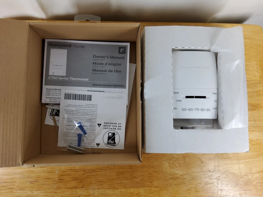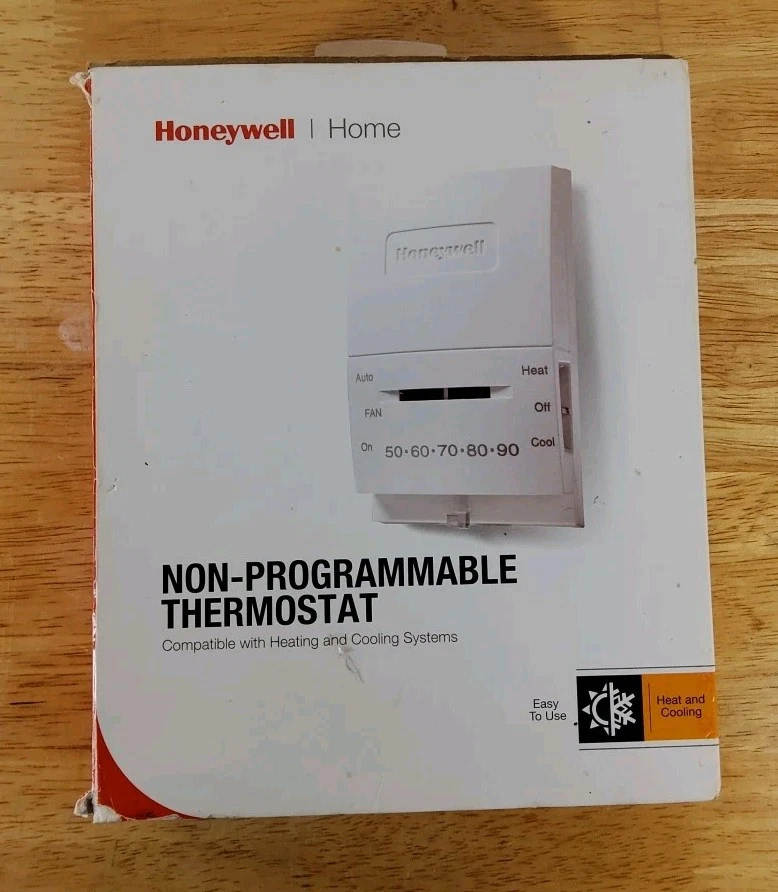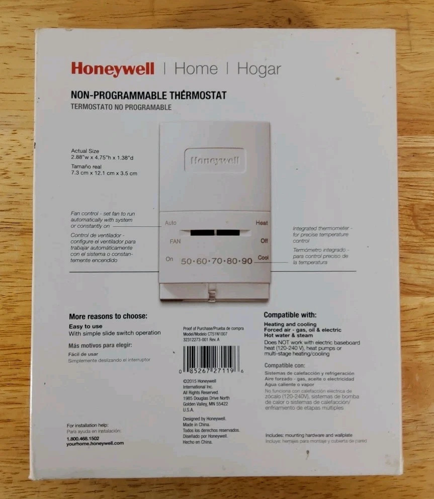 Honeywell Home Non-programmable thermostat. Actual size 2.88'' w x 4.75'' h x 1.38'' d.