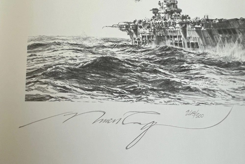 Impresión Launch Against the Bismarck Robert Taylor LE con libro de pinturas marítimas