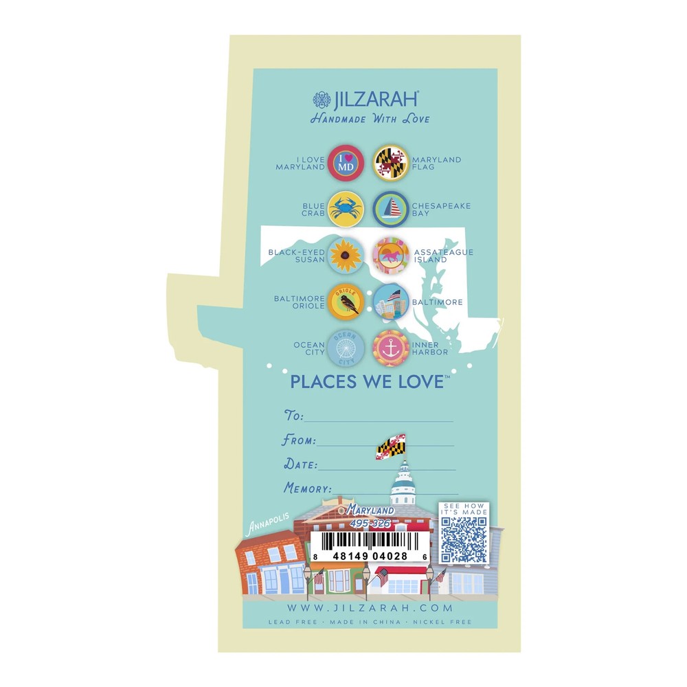 DESTINATION MARYLAND Clay Bracelet by JILZARAH Description: 8mm handmade clay beads. Antique finish silver spacers. State Flag, Blue Crab, Chesapeake Bay, Baltimore Oriole, Ocean City, Inner Harbor. MARYLAND STATE Charm. Strung on 1.2mm industrial strength elastic cord. 6.75" - 7" diameter. FREE SHIPPING!!! *JILZARAH Beads are handmade from smooth layers of clay, slowly rolled down to size while keeping the design. The clay is then rolled by hand into beads and made into beautiful designs. *JILZARAH Beads can be cleaned with hot water and laundry detergent. Use a small tooth brush to scrub clean and dry with a soft cloth. ***Buy your JILZARAH Beads from an official JILZARAH Bead dealer!*** Thank you for looking!!! CHECK OUT OUR EBAY STORE FOR MORE SELECTIONS!