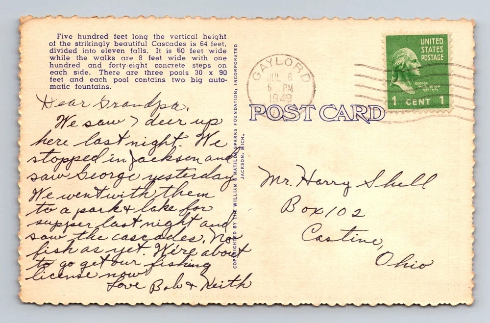 Jackson MI-Michigan, Sparks Foundation Illuminated Cascades Vintage Postcard