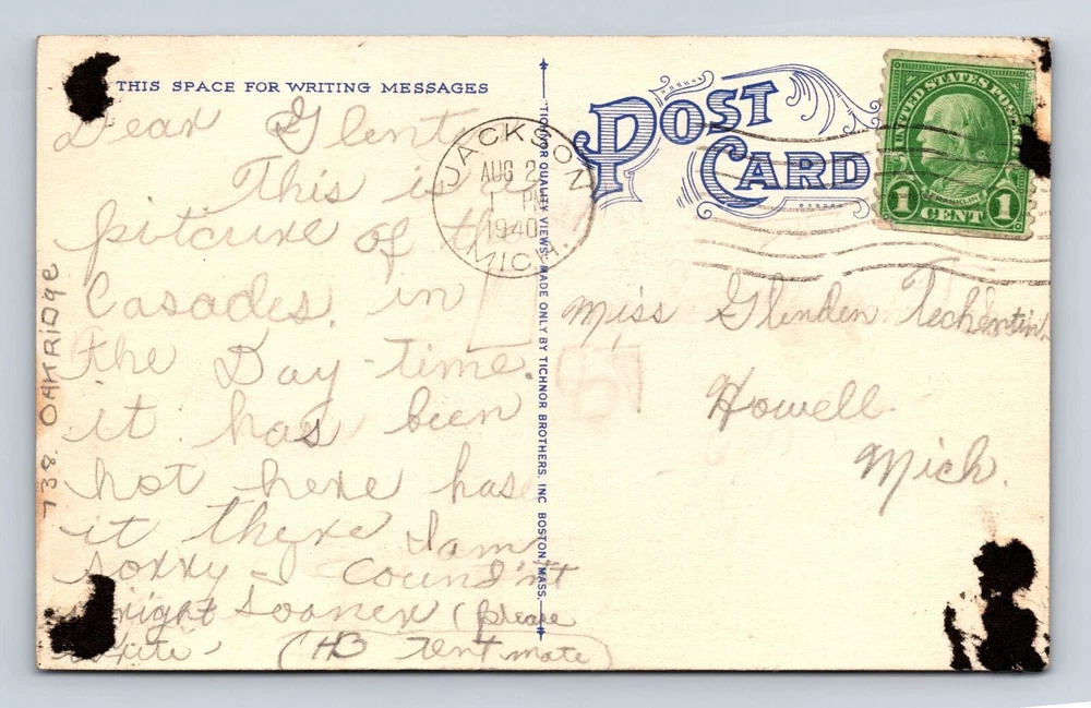 Jackson MI-Michigan, The Cascades, Sparks Foundation, Vintage c1940 Postcard
