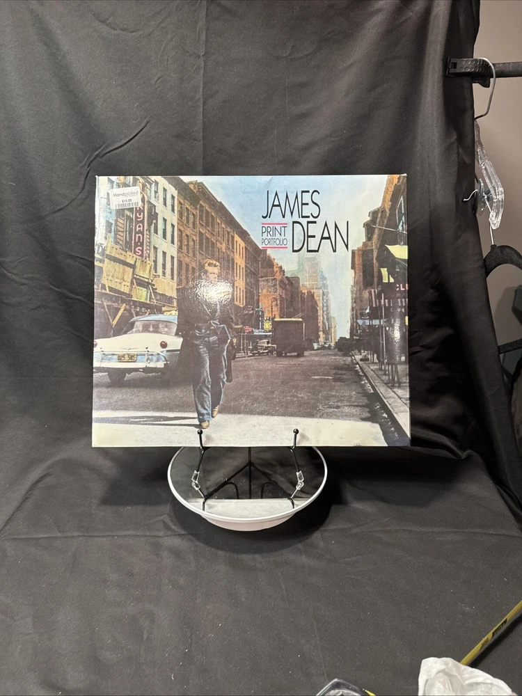 This 8 print portfolio features the iconic James Dean, known for his roles in movies like Rebel Without a Cause and East of Eden. The prints were produced in 1990 and measure an impressive 13" x 15", making them perfect for framing or crafting. The portfolio includes prints of Dean's portrait, as well as scenes from his movies. The prints are reproductions and are unsigned. They are a great addition to any collection, especially for fans of Americana, travel and transportation, and famous personalities. Get this unique portfolio today and add a touch of James Dean's timeless appeal to your home or office décor.
