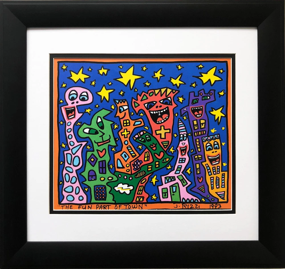 James Rizzi " The Fun Part of Town " CUSTOM FRAMED POP ART city urban cityscape