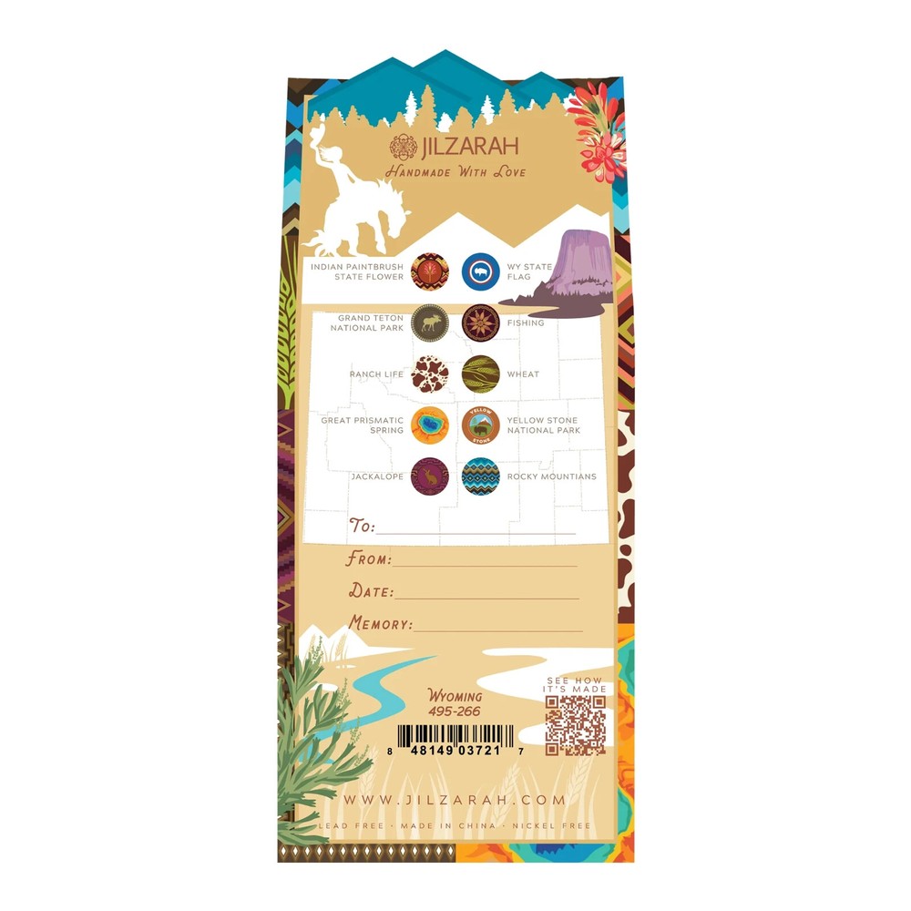 DESTINATION WYOMING Clay Bracelet by JILZARAH Description: 8mm handmade clay beads. Antique finish silver spacers. Grand Teton, Ranch Life, Jackalope, Wheat, Fishing, Yellow Stone, Rocky Mountains. WYOMING Charm. Strung on 1.2mm industrial strength elastic cord. 6.75" - 7" diameter. FREE SHIPPING!!! *JILZARAH Beads are handmade from smooth layers of clay, slowly rolled down to size while keeping the design. The clay is then rolled by hand into beads and made into beautiful designs. *JILZARAH Beads can be cleaned with hot water and laundry detergent. Use a small tooth brush to scrub clean and dry with a soft cloth. ***Buy your JILZARAH Beads from an official JILZARAH Bead dealer!*** Thank you for looking!!! CHECK OUT OUR EBAY STORE FOR MORE SELECTIONS!