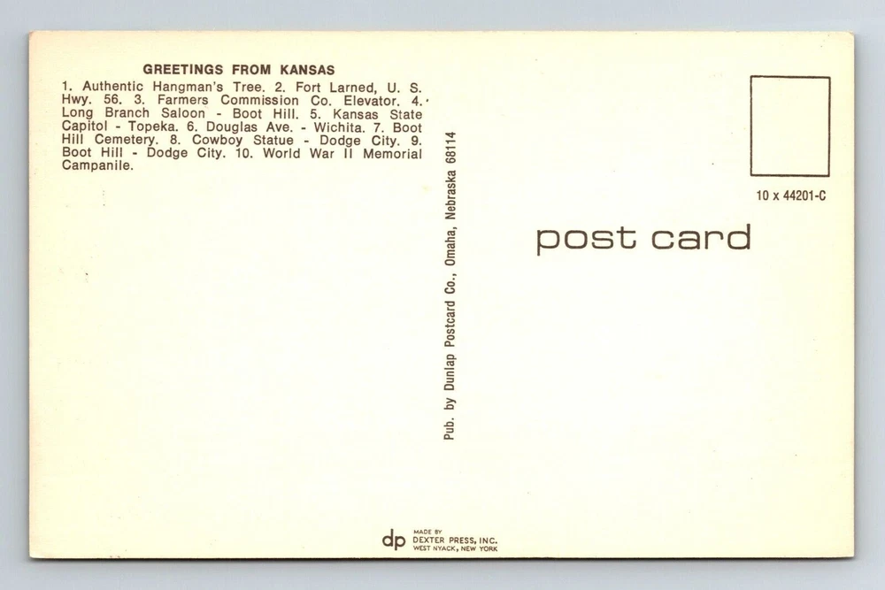 Country/Region of Manufacture: United States City: Kansas Region: Kansas Subject: Cities & Towns Theme: Cities & Towns Era: Chrome Unit of Sale: Single Unit Continent: North America Postage Condition: Unposted Country: USA Original/Licensed Reprint: Original Type: Printed (Lithograph)