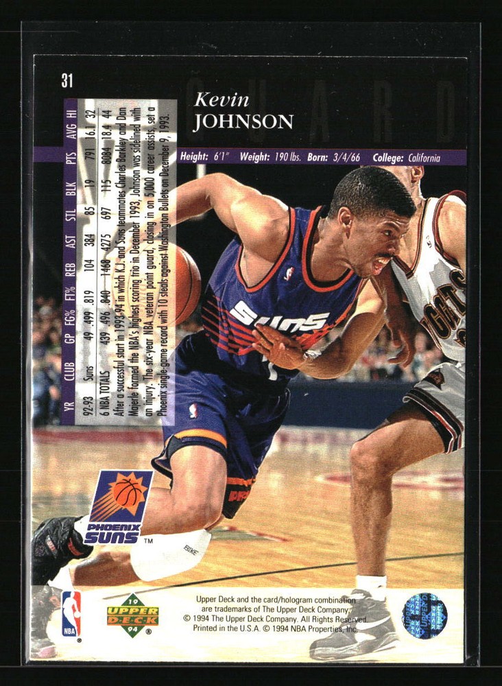 Year Manufactured: 1993 Autographed: No Sport: Basketball Set: Upper Deck Special Edition Manufacturer: Upper Deck Special Edition League: NBA Card Number: 31 Team: Phoenix Suns Season: 1993 Graded: No Type: Sports Trading Card Player/Athlete: Kevin Johnson
