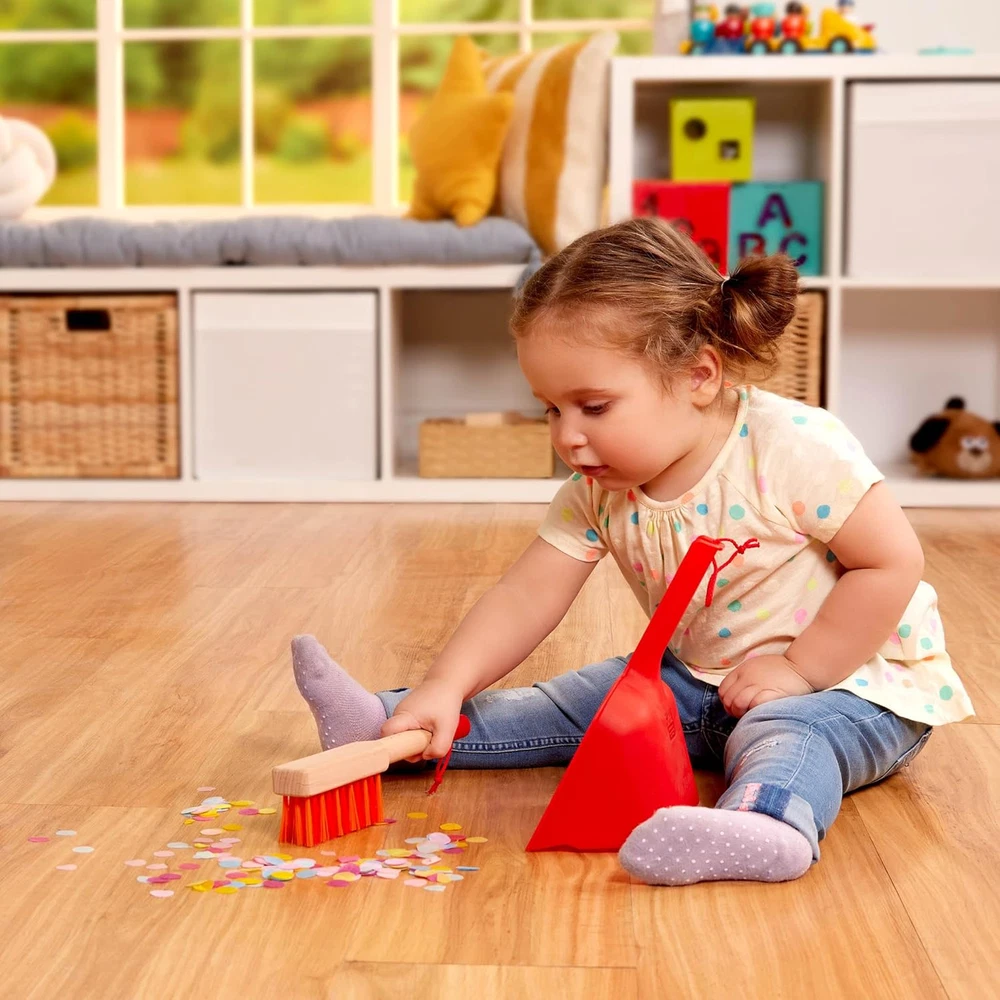 Pretend Play Set: Clean the days away—this cleaning set for kids has tons of realistic details for hours of imaginative pretend play. 5 Cleaning Toys: With a toy broom, mop, brush, duster, and dustpan, your kiddo can lend a helping hand. Developmental Benefits: Playing with this cleaning set can improve motor skills and hand-eye coordination. Storage Included: This playset comes with a storage stand for keeping all the cleaning toys neat n’ tidy. Age Recommendation: This toy cleaning set is recommended for kids 2 years +. Beautiful cleaning set to keep your little one busy! This colorful and kid-friendly set comes with hours of pretend play opportunities and it can also help your child develop a sense of responsibility as they clean and play.