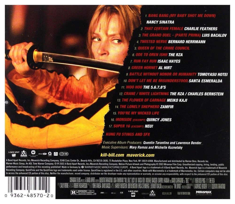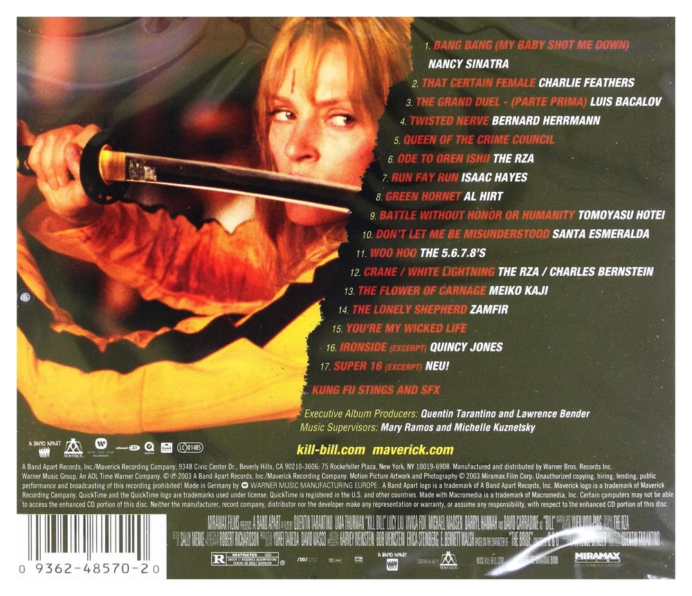 Format: CD Brand: Warner Brothers Style: ABIS_MUSIC gtin13: 0093624857020 Genre: Soundtrack Record Label: MAV, Maverick Release Title: Kill Bill: Vol. 1 (Original Soundtrack) Producer: 5.6.7.8's^Bernard Herrmann^Charles Bernstein^Gheorghe Zamfir^Isaac Hayes^Klaus Dinger^Lawrence Bender^Lee Hazlewood^Leroy Gomez^Michael Rother^New Dylans^RZA Artist: Various Release Year: 2003 UPC: 0093624857020 MPN: 4 3 00048570