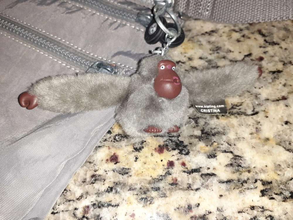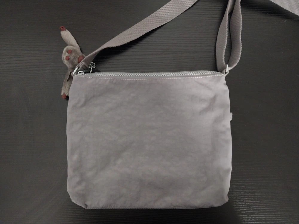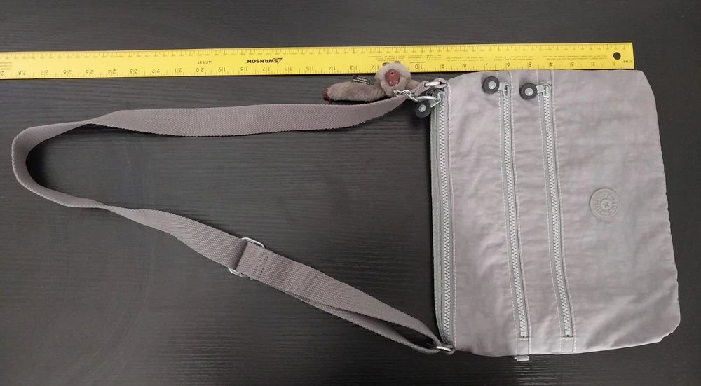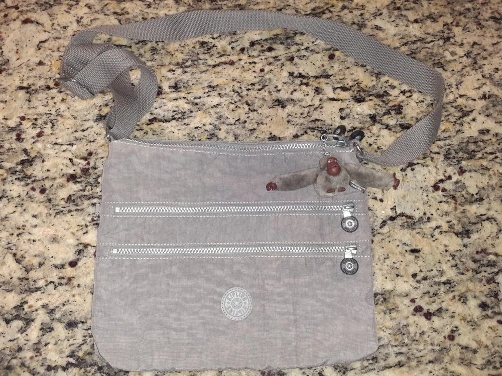 Kipling Women's Tote Zip Bag Crossbody Slate Gray w/ Monkey doll Key Chain