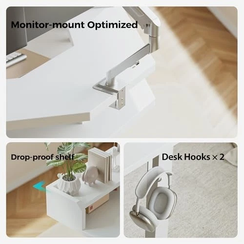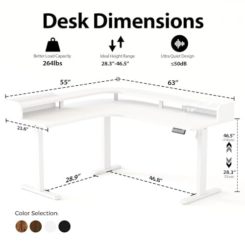 Return Policy Fast Delivery Trusted seller L Shaped Standing Desk, Adjustable Height Corner Gaming Desk with Shelf, Sit Stand Up Desk, 63 x 55 Inch Home Office Computer Table, White Product Description 【Adjustable Height 】Effortlessly switch between sitting and standing with 28.3"-46.5" height range. Customize your favourite height by preset buttons, easy switching of working modes. 【Extra Large Storage Space】The tabletop is equipped with a practical shelf, providing you with plenty of space. Computer monitors, printers, everything you need is organized. 【Ergonomic L Shape Design】The L shaped design maximizes workspace with ergonomic support, reducing back and neck strain during long-term use. Ideal for multitasking and optimizing work areas. 【Powerful Lifting System】We adopt an advanced lifting system to ensure smooth and stable height adjustments with minimal noise(under 50db)during operation. 【Sturdy Desk】Built with a robust steel frame, this standing desk can bear up to 264 lbs.Providing reliable support for all your work essentials. 【Designed for optimal stability】The short side is fixed on the left, and the control panel must be installed on the right side (pre-drilled holes). Tabletop made of FSC-Certified wood Shipping Returns Payment Shipping Shipping is FREE to all addresses other than APO/PO boxes in the lower 48 states. All our stock ships from US-based warehouses. Shipped via USPS or UPS (depending on location and package weight) Unless stated otherwise, all orders will ship within 24-72 hours of your payment being processed. Check our feedback to see the great reviews of FAST shipping we offer. Returns Seller does not accept returns Payment We currently accept payment via eBay managed payments only. Once payment is cleared, we will dispatch your shipment within 1-3 business days. Please refer to the "Shipping" tab for more information regarding shipping speed to your destination.