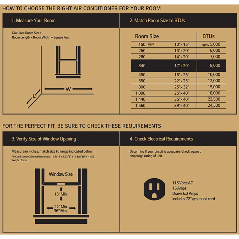 Powered by Frooition All Categories LG LW8016ER 8000 BTU 115V Window Air Conditioner with Three Fan Speeds Remote Control Overview Item Description Product Features: 8000 BTUs effectively cools up to 350 Sq Ft ideal for making a living room comfortable Three fan speeds offer the perfect setting for any situation Window mounted for easy installation and max efficiency Remote control included for unprecedented ease of use Secure mounting assembly included Product Technologies: Electronic Touch Controls: Easily and quickly adjust temperature, fan speeds and programmable timer operations with the touch of a button. The easy-to-read digital display and allows for simple regulation of the internal temperature of your home. Remote Control: The included remote allows you to choose and adjust your comfort settings without having to get up and make the adjustments by hand. R-410A Refrigerant: Liquid agents contained within the coils of an air conditioner are what make cooling possible. R-410A is the eco-friendly refrigerant of the future. Recently recognized by the EPA, R-410A contains no bromine or chlorine, and consequently will not harm or deplete the ozone layer unlike previous refrigerants. Specifications: BTU Cooling: 8000 Cooling Area: 340 Fan Speeds: 3 Depth: 19-3/8" Height: 12-3/8" Width: 19-9/16" Voltage: 115v Similar Products: LW8016ER (This Product) : 8000 BTU, 115 Volts LW6016ER : 6000 BTU, 115 Volts LW1016ER : 10000 BTU, 115 Volts LW1216ER : 12000 BTU, 115 Volts LW1516ER : 15000 BTU, 115 Volts LW1816ER : 18000 BTU, 220 Volts LW2516ER : 24500 BTU, 208/230 Volts Why Choose BuildInc? OUR PROMISE TO YOU About Us At Build, we promise to provide the best selection we can, most competitive pricing, and unmatched customer service. Our store has quality home improvement products from trusted manufacturers like Moen, American Standard, Delta, Kraus, Kichler, Progress Lighting, Schlage, Kwikset, Baldwin, Broan, NuTone, Air King, and Rev-A-Shelf. With over 200,000 home improvement products for you to choose from, we have just what you need to get your project done. Fast & Free Shipping We promise to make it our priority to get you your items as fast as we can. We ship from 440 warehouses around the country, ensuring that your product will get to you as soon as possible. We know you're eager to get your hands on your new purchase, we would be too. As a bonus, most items ship for free. Returns We are happy to accept returns of unused or defective items for a refund within 30 days from the date of delivery. For returns outside 30 days, please contact our Customer Service team to go over our options. For full details, please view the Shipping and Payments tab above. To initiate a return simply go to the eBay Returns Portal and submit a return request. We ask that all items be returned with all original components via a traceable method. Once your return is received and processed, we will quickly get your refund or replacement issued. If for any reason you are unsatisfied with your purchase or for product or warranty questions, please contact Customer Service team for assistance. More Items! View more great items! About Us | Shipping | Returns | Contact Us | FAQ | Collections | Special Offers! Powered by Frooition Frooition Frooition | No-js Template | eBay design, eBay store design, eBay shop design, eBay template design, eBay listing design (ver:froo_no_js) This listing is currently undergoing maintenance, we apologize for any inconvenience caused.