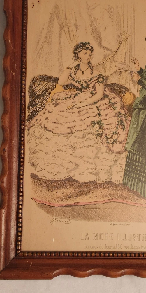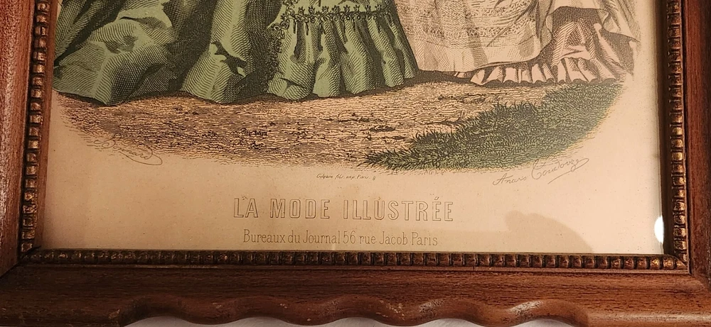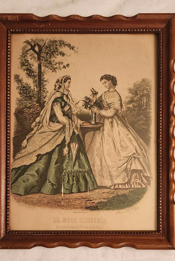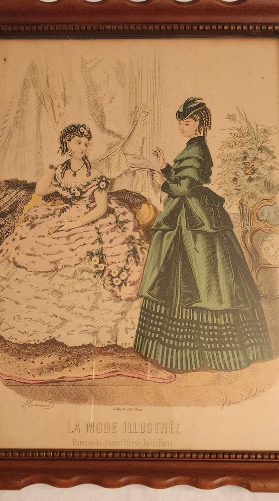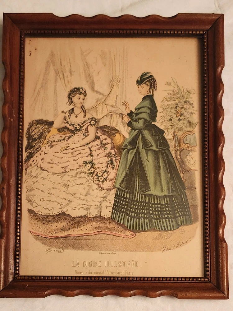 La Mode Illustrée 1889 was published weekly on Sundays, with illustrations and descriptions of Victorian fashions and the latest must-have accessories. There was always a fashion plate. La Mode Illustrée set the standards for a circulation of 20,000 fashion-conscious stylish women. These are 1950's reprints of 1860's plates. Size is 13.5 in ×10.5 in