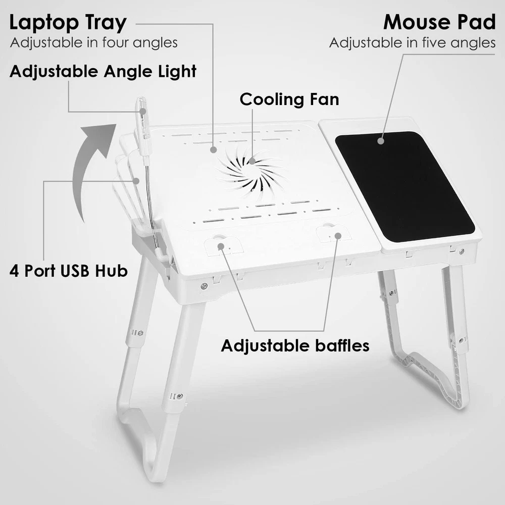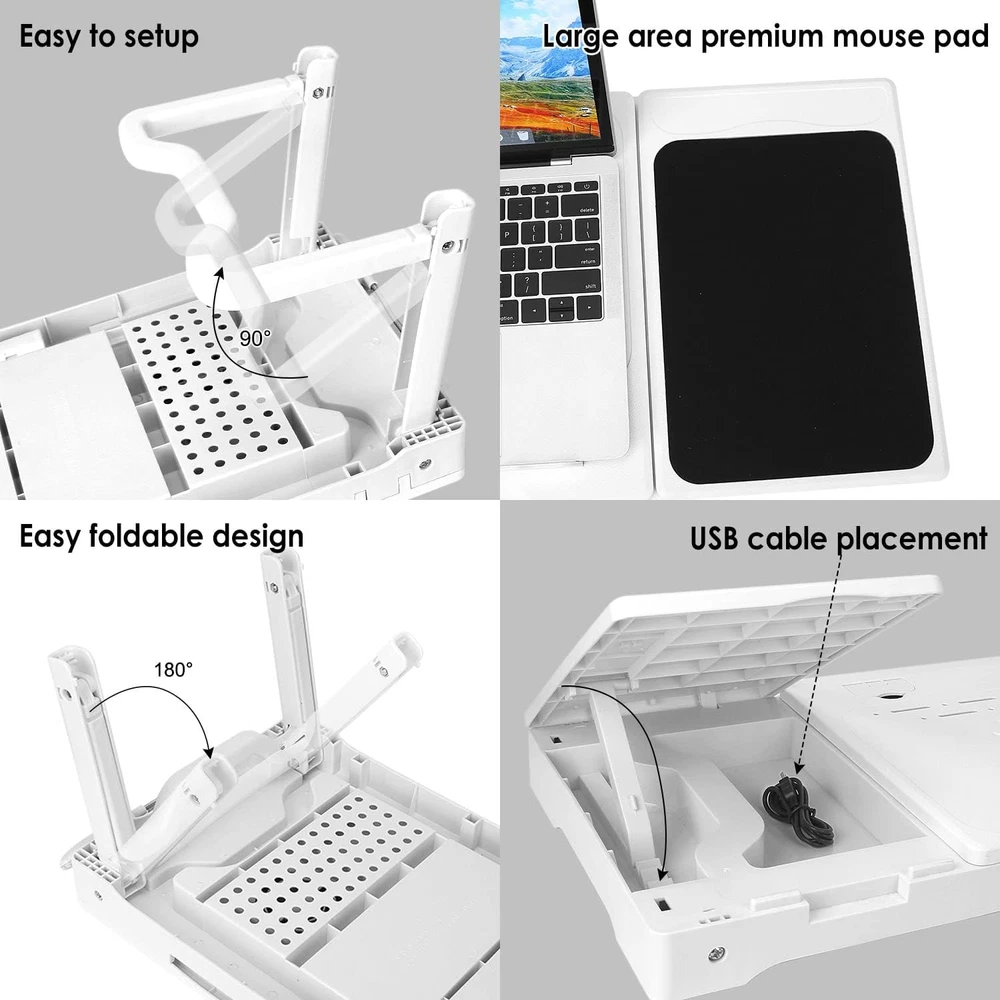 Store New Arrivals Add to Favorite View Feedback Contact Laptop Desk for Bed,Adjustable Laptop Stand Foldable Bed Table Portable Lap Desk Folding Notebook Stand Reading and Writing Tray with 4 USB Port and Cooling Fan for Bed Couch Sofa Floor (White) Description Item model number 11112 Style Portable,Adjustable,Simple Assembly Required No Color White Finish Type Unfinished Material ABS plastic Material Type ABS plastic Manufacturer Part Number 11112 Item Weight 5.19 pounds Age Range (Description) Adult Included Components fan, flexible light, mouse pad, 4 USB ports, pen storage Special Feature Adjustable,Flexible,Foldable,Portable Package Dimensions 22.5 x 12.7 x 2.7 inches 【Sturdy and Stable】Our laptop desk table is well made ABS plastic, nice and compact.You will love the sturdiness, stability and light weight of this laptop portable desk.It is perfect for home and traveling. 【All in One Laptop Desk】Laptop desk with fan keeps your computer cool. The flexible light is helpful if someone is sleeping while you are working in bed. You won't need the bedroom light on.Our laptop table feature mouse pad attacted, 4 USB ports and a pen storage. 【Adjustable Laptop Tray Table】It can hold your laptop high enough,It helps your neck muscles not become as tight due to looking down all the time. You can use it in bed, couch or with the legs tucked in the sides of a recliner or just at your regular desk to elevate it. 【Easy to use】Easy to set up and simple structure to fold and unfold. it is not only for doing your homework but also having breakfast as well, this table allows you do it comfortably on your bed,couch or sofa. 【Wide Application】Perfect portable laptop desk for working, reading, writing, watching movie on bed couch sofa. It can act as a laptop stand desk for office work, a breakfast tray for eating or a book table when study or drawing, etc. Product Description With this useful Laptop Desk that lets you doing your homework and having breakfast in bed more convenient and quickly. Features : Useful : Sturdy and your legs are easy to open and close when you surf the internet on the laptop or reading. Easy to use : It is easily folded flat and store in a corner or under your bed to save your room space. Lightweight and portable, it's very easy to take with you during travel. Multi- Purpose : You can use it for support when you use your electronic devices, eating, reading or writing, and it folds away nicely. Specification : Color: White, Grey, Blue Folded Size: 20.87”L x 11.81”W x 2.56”H Height with legs half unfolded: 10" Height with legs fully unfolded: 15" Weight: 2kg Package Included : 1PCS Laptop Table 1PCS USB Cable 1PCS User Manual Details of the Product : With large mouse Pad LED USB Lamp Adjustable Heights Application : With this Laptop Bed Tray Table that lets you do work from the comfort of your bed so easy and handy that lets you work and relax at the same time ! ABOUT US We offer the best prices around on high quality products. Our E-store includes media such as books, movies, music and games while offering electronics, toys, sporting apparel, clothing, tools, general home, garden items and more. SHIPPING We are always working hard to ensure your package arrives as soon as possible. Please understand that some factors like weather, high postal traffic, and the performance of shipping companies are outside of our control. We offer free shipping to the lower 48 states and ship within 2 business days of payment, usually sooner. We do not accept P.O. Boxes. Please provide a physical address. For shipping outside of the continental USA, we only use eBay's Global Shipping Program.The item is shipped to KY and then sent to the rest of the world. International customers are responsible for all duties and taxes. Continue to check out in order to calculate costs for shipping the item to your country. Messages regarding eBay's Global Shipping Program MUST be directed at eBay EXCLUSIVELY. RETURNS We offer a 30-Day Return Policy on items which you are not completely satisfied with. You have the option for a full-refund or an exchange of the item. No returns are available on items shipped outside of the USA. PAYMENT We accept PayPal. CONTACT US This page content is yet to come Please ad us to your favorite seller and visit again later Thank You CUSTOMER SATISFACTION We try our very best to make sure every customer is completely satisfied. If there's a problem, message us! We're happy to help. WE ACCEPT Copyright © 2021 AutoDS. | All Rights Reserved