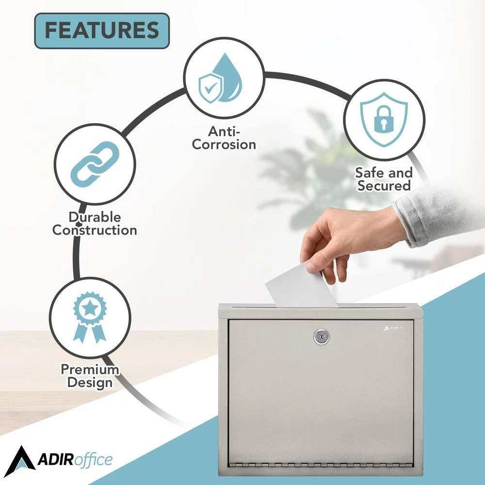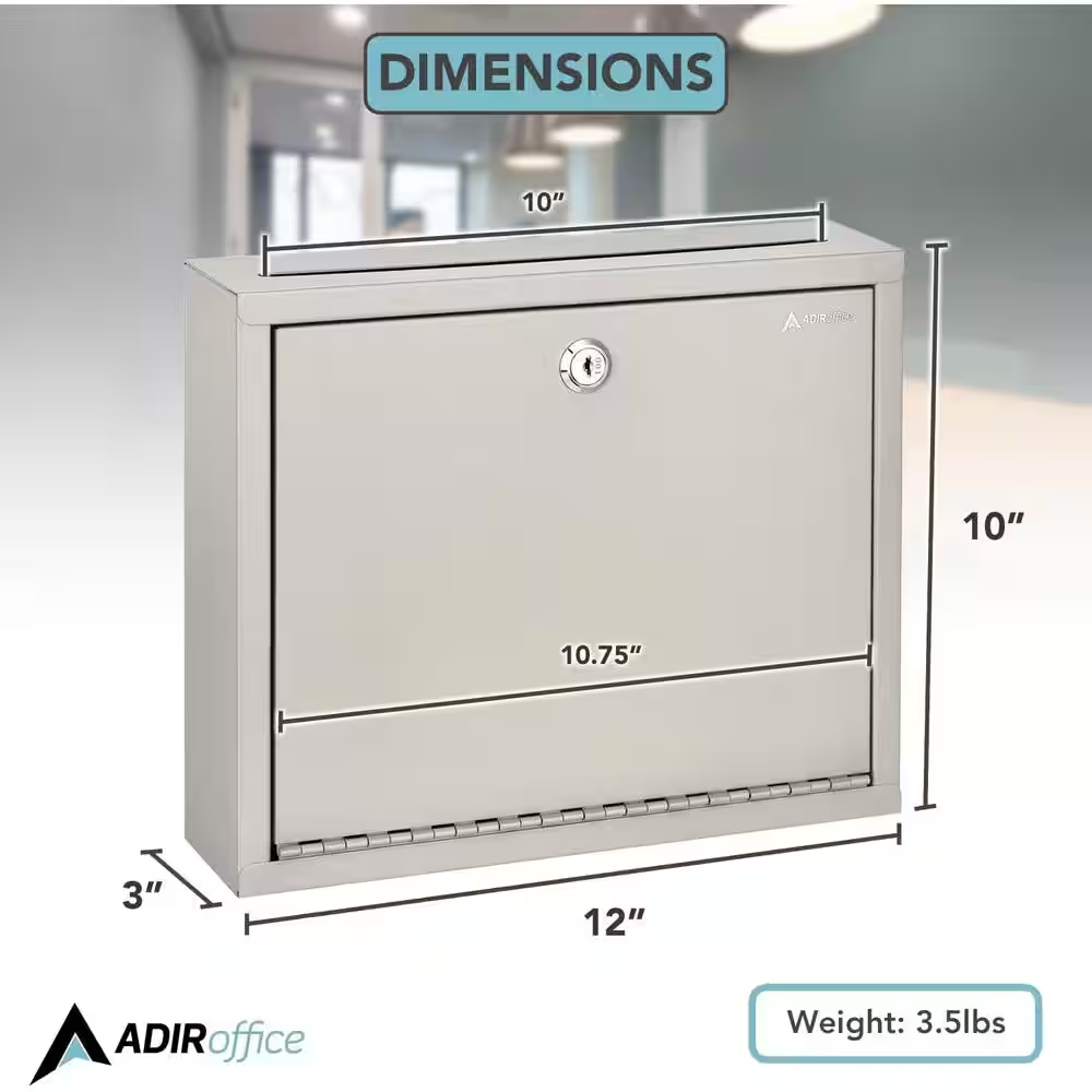 Fast Shipping On All Items 30 Days Money Guarantee Customer Support Excellent Service 100% Satisfaction Satisfaction Guaranteed Large Size Steel Multi-Purpose Beige Drop Box Mailbox Specification Access Type Front Only Assembly Required No Color Grey Color Family Beige/Cream Features Corrosion Resistant,Decorative,Fade Resistant,Scratch Resistant Hardware Color Family Metallic Hardware Finish Family Metal Included Keys,Mounting Hardware Mailbox Capacity (cu in) 0.208333333333333 Mailbox Size Small Mailbox Style T1 Material Steel Mount Type Wall Mount Product Weight (lb) 3.15 lb Returnable 90-Day Security Locking Wall Mounting Type Flush Or Surface Mount Manufacturer Warranty 1 Year US Postmaster General Approved No Assembled Depth (in) 3 in Assembled Height (in) 10 in Assembled Width (in) 12 in 12.0 inches x 3.0 inches x 10.0 inches. Weight: 3.15 lb Item Description Heavy-duty steel drop box for incoming mail Key locking letter drop box for extra security Quick and eays wall installation The AdirOffice Large Steel Drop Box can be used as a mail collection box for all outgoing or incoming mail. These boxes can also be used to keep private office correspondence confidential. It features a full piano hinged door and is constructed of durable, heavy-gauge steel with a scratch resistant finish. The drop slot measures 10 in. W x 5/16 in. D and the box measures 12 in. x 3 in. x 10 in. These sturdy units mount securely to any wall or door. It includes a durable lock with 2 keys. The suggestion box comes with a slot on top deep to accommodate keys, ballots, mail, money or checks with ease. In addition to be used as a drop box or for inter-office mail, this box can also be used as a comment box, or rent deposit box. Mail Collection Box - Ideal for incoming and outgoing mail, helping to keep private office correspondence confidential Compact Dimensions - Measures 10" H x 12" W x 3" D, with a 0.31" x 10" drop slot, suitable for documents, mail, and small packages Durable Steel Construction - Made from heavy-gauge steel with a scratch-resistant red finish, ensuring long-lasting durability and resistance to wear Full Piano-Hinged Door - Provides easy access to contents, enhancing the box's security and functionality Secure Wall or Door Mounting - Can be securely mounted to any wall or door, ideal for offices, mailrooms, and customer service areas Easy Installation - Comes with installation hardware for a hassle-free setup Multi-Purpose Use - Not only serves as a drop box for mail but also helps keep private office correspondence safe and secure Two Keys Included - Comes with two keys for easy and quick access to the contents inside Mounts securely to any wall or door 1 year manufacturer warranty Beige finish About us We offer the best prices around on high quality products. Our E-store includes media such as books, movies, music and games while offering electronics, toys, sporting apparel, clothing, tools, general home, garden items and more. Shipping We are always working hard to ensure your package arrives as soon as possible. Please understand that some factors like weather, high postal traffic, and the performance of shipping companies are outside of our control. We offer free shipping to the lower 48 states and ship within 2-3 business days of payment, usually sooner. We do not accept P.O. Boxes. Please provide a physical address. For shipping outside of the continental USA, we only use eBay's Global Shipping Program.The item is shipped to KY and then sent to the rest of the world. International customers are responsible for all duties and taxes. Continue to check out to calculate costs for shipping the item to your country. Messages regarding eBay's Global Shipping Program MUST be directed at eBay EXCLUSIVELY. Returns We offer a 30-Day Return Policy on items in which you are not completely satisfied with. You have the option of a full-refund or an exchange of the item. No returns are available on items shipped outside of the USA Satisfaction We try over very best to make sure every customer is completely satisfied. If there's a problem, message us! We're happy to help. Payment Options Shop With Confidence