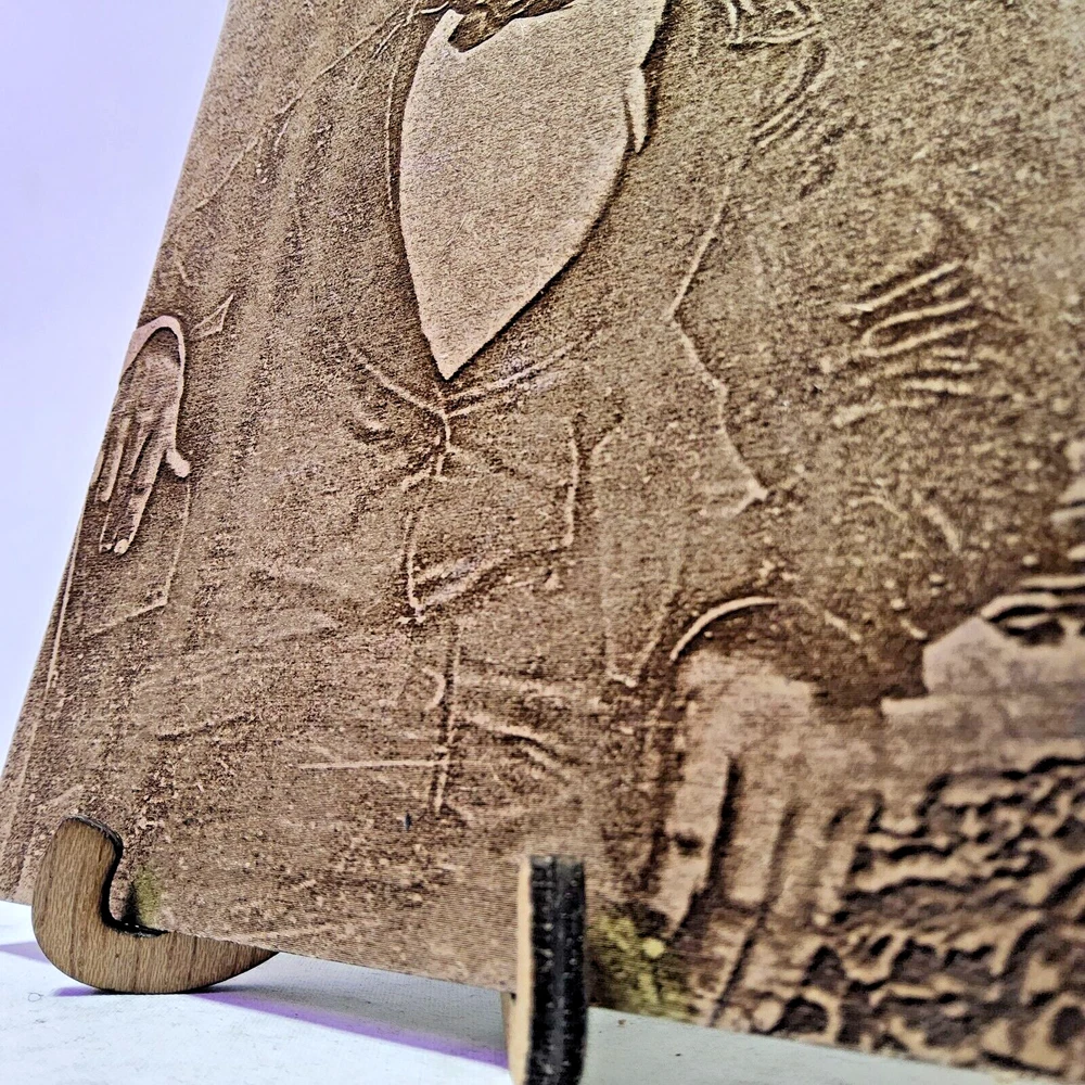 Laser engraved Edgar Allen Poe textured 3d portrait mdf board 6x8 writer raven author soldier american history horror suspense Hard to tell from but it has some nice texture to it. Like a slight 3d effect. Comes with custom laser cut stand. 6x8. 1/8" made for laser mdf board Quite a bit of work goes into making my laser cut/engraved art. I come up with most of art/shapes,draw them out,edit colors,sizes, transfer files to multiple formats,paint,assemble,etc. Lots of steps to get some fine off the wall pieces. From tablet,to you. I have this design as an art guitar as well in listings. Or will be uploading soon. Can give bundle deal for multiple pieces. Not entertaining custom pieces at this moment. ***Treasure Suite offers you many pieces of my art prints now*** ###This section is for laser cut sublimation prints of my digital art. Measurements vary by piece. ### *Welcome to my unique collection of digital art, where creativity meets craftsmanship! Each piece in this category features my original digital designs, heat pressed into vibrant sublimation prints on laser cut whiteboard material. Some are engraved then hand painted. These art pieces are not just decorations, they are collectibles that bring a touch of gothic, rock and roll, horror, pin-up, and lowbrow art into your space. *perfect for:* *man cave *castle *bungalow *abode *domicile *penthouse *flat *cabin *studio *boutique hotel *yacht *etc *These pieces make fantastic gifts for art enthusiasts and collectors alike. Who doesn't enjoy vibrant digital art of out of this world space huntresses, demon witches, cyberpunk vixen cyborgs, spooky mistresses, hearses, hotrods, and so on? ***May consider custom orders of laser cut or engraved items.***