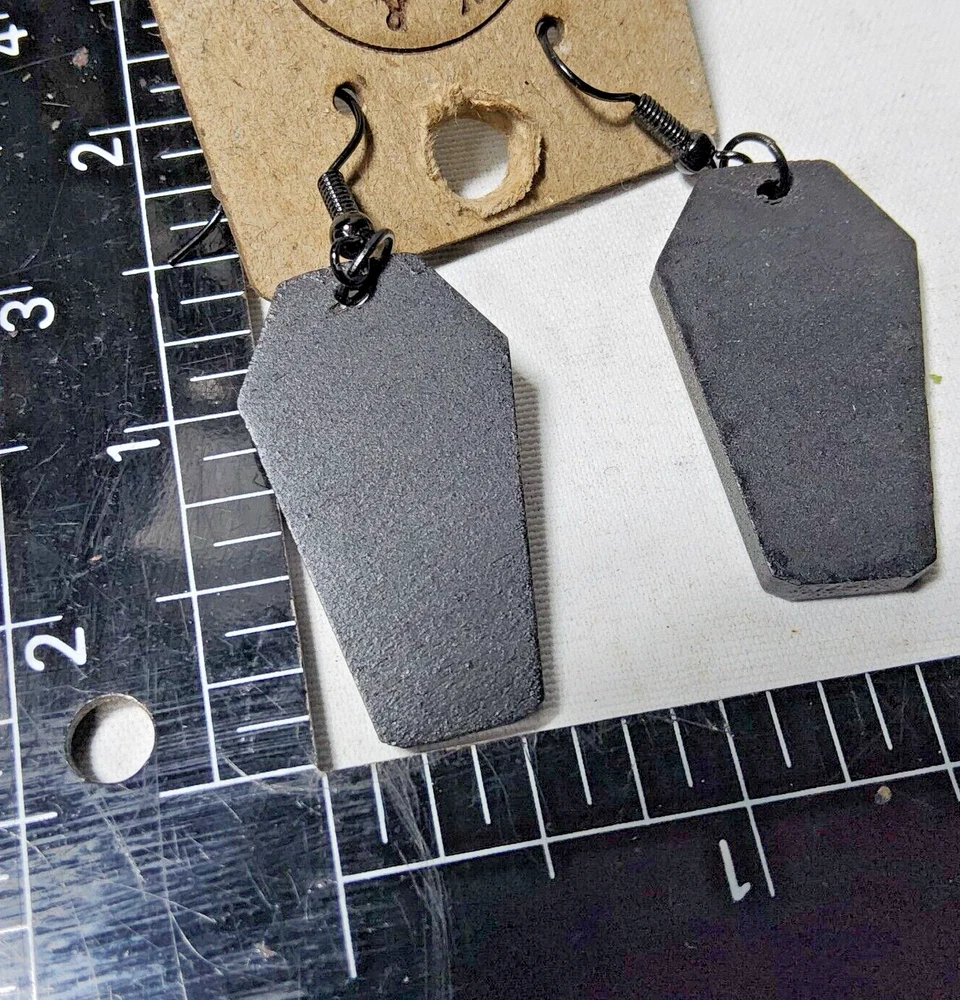 Laser engraved cut coffin demon skull earrings hallowen custom horror fashion Based off a demon skull coffin design i made digitally. Then sent through laser machine. Made on maple. Measures 1.5"h x .75"w x 1/4"d. Loaded with hypoallergenic metal ear hooks. Check out plenty of other lasered creations of mine in shop. Order a few pieces and I'll give you a bundled art deal. Not doing customs at the moment but may be persuaded to fire up the laser for right project. Ebay reselling keeps me busy. Message me to find out. Thanks again for visiting my Ebay shop. ***Treasure Suite offers you many pieces of my art prints now*** ###This section is for laser cut sublimation prints of my digital art. Measurements vary by piece. ### *Welcome to my unique collection of digital art, where creativity meets craftsmanship! Each piece in this category features my original digital designs, heat pressed into vibrant sublimation prints on laser cut whiteboard material. Some are engraved then hand painted. These art pieces are not just decorations, they are collectibles that bring a touch of gothic, rock and roll, horror, pin-up, and lowbrow art into your space. *perfect for:* *man cave *castle *bungalow *abode *domicile *penthouse *flat *cabin *studio *boutique hotel *yacht *etc *These pieces make fantastic gifts for art enthusiasts and collectors alike. Who doesn't enjoy vibrant digital art of out of this world space huntresses, demon witches, cyberpunk vixen cyborgs, spooky mistresses, hearses, hotrods, and so on? ***May consider custom orders of laser cut or engraved items.***