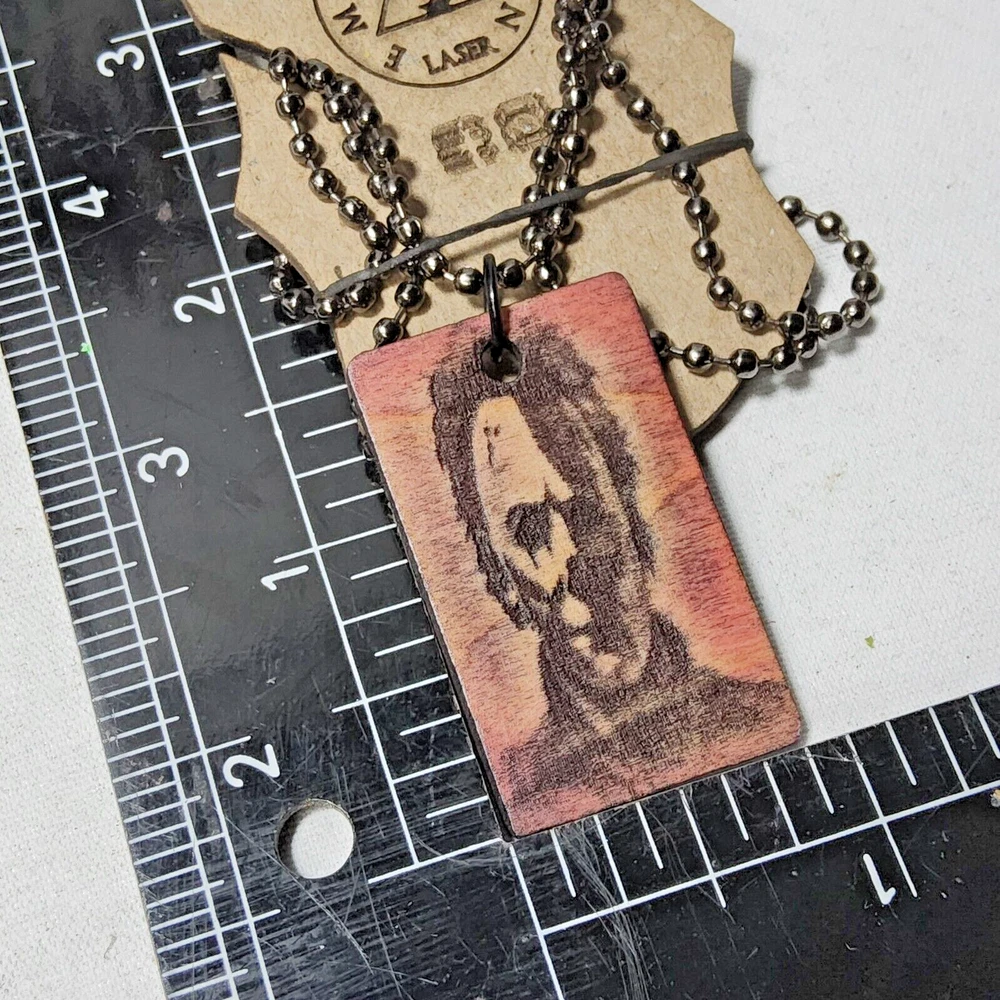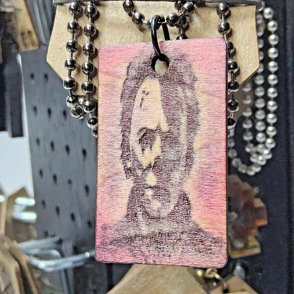 Country/Region of Manufacture: United States Year of Production: 2023 Artist: me Theme: Art, Celebrities, Comics, Fantasy, Industrial, Music, People, Portrait Framing: Unframed Signed: No Item Width: 1" Personalize: No Unit of Sale: Single Piece Item Length: 24" aluminum ball chain necklace Image Orientation: Landscape Style: Fantasy, Figurative Art, Illustration Art, Miniature, Outsider Art, Urban Art Certificate of Authenticity (COA): No Production Technique: laser engraved and cut Subject: Halloween, horror, movie Item Height: 2" Original/Licensed Reprint: Original Features: Limited Edition, Miniature Time Period Produced: 2020-Now Handmade: Yes Region of Origin: Georgia, USA Type: laser cut earrings Material: wood, spray paint, metal, ram board