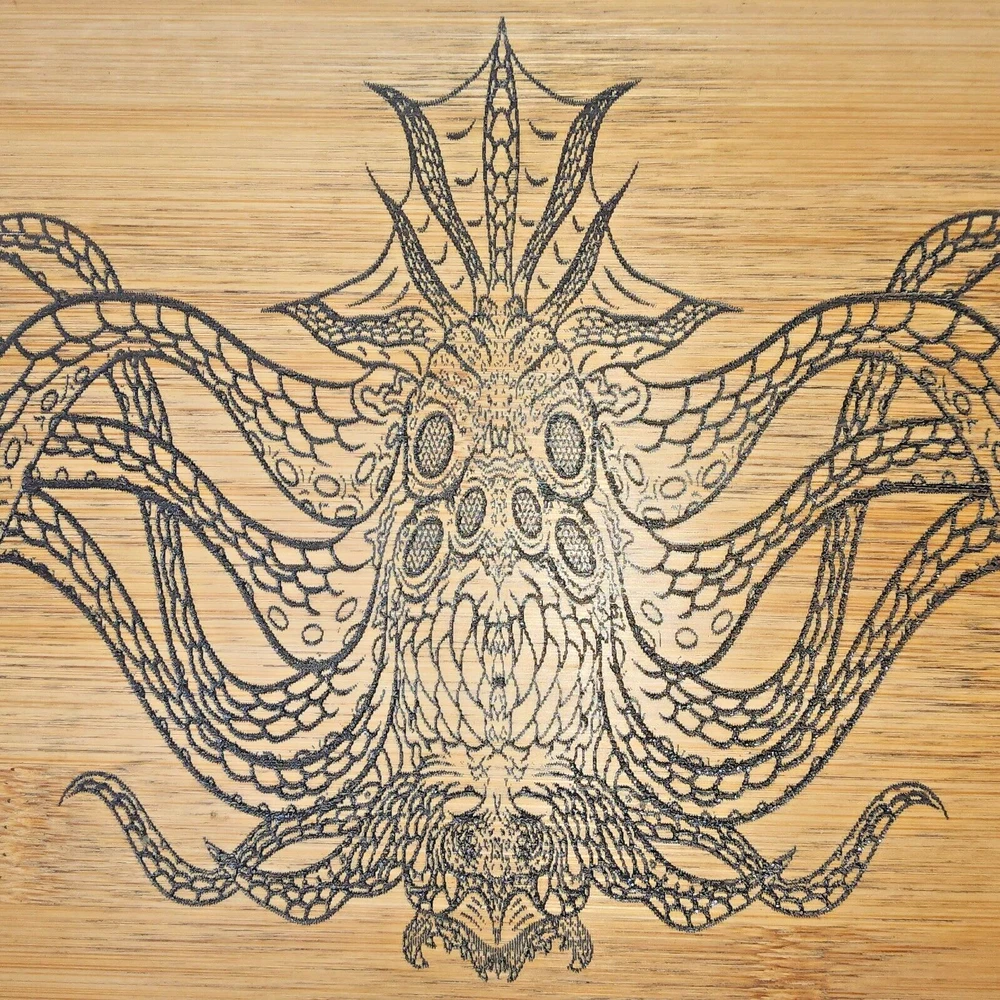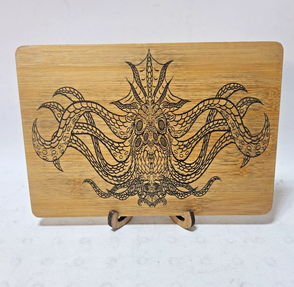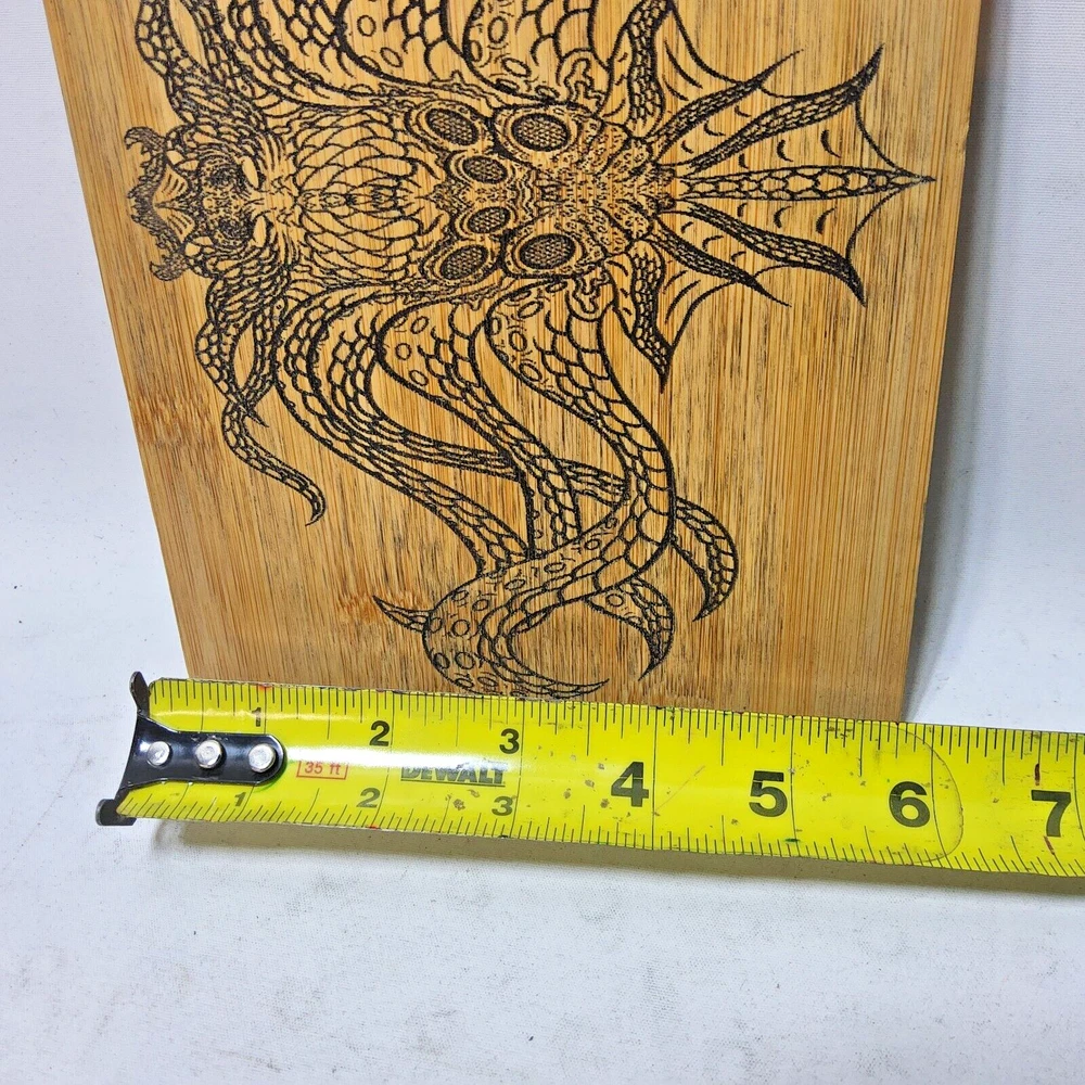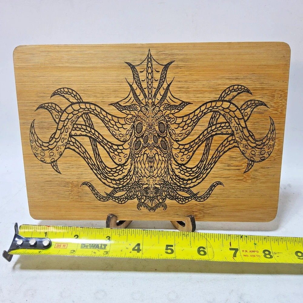 Laser etched cthulhu cutting board 6x8 bamboo engraved digital drawing my art