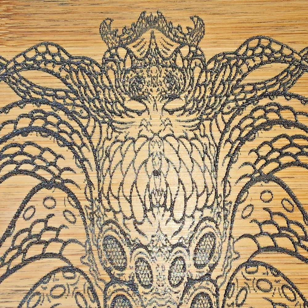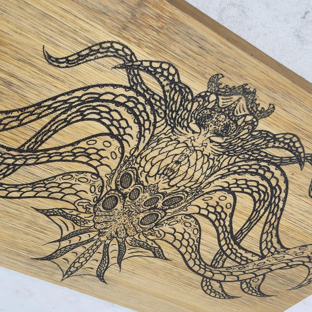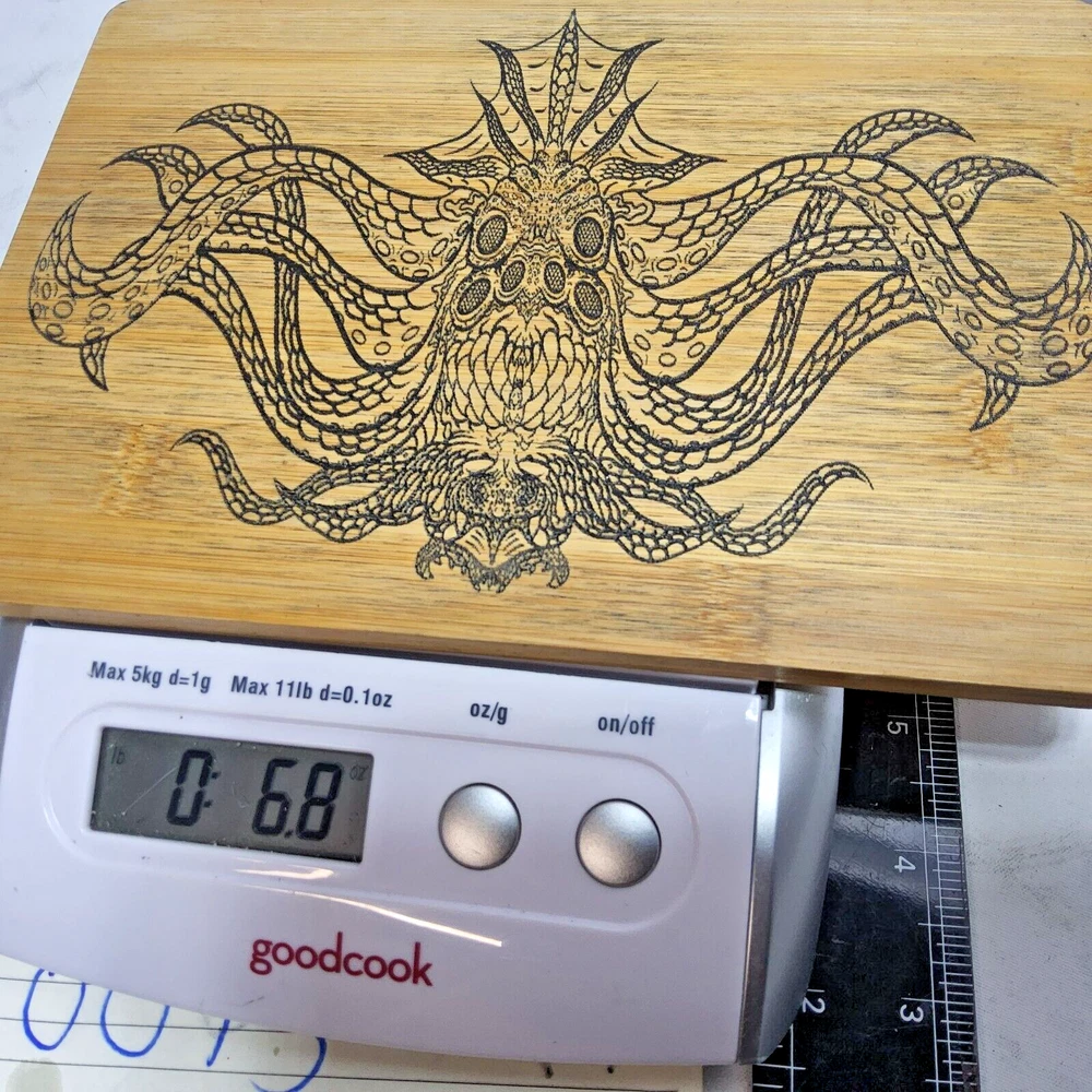 Laser etched cthulhu cutting board 6x8 bamboo engraved digital drawing my art