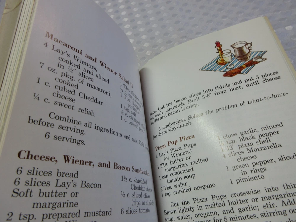 Lay Meat Company dated back to 1920 or 21, so this book must be from the late 70's. Lays was the official meat brand of the 1982 World's Fair. Great recipes, colorful illustrations. Measures approx 9"X6X3/8". Please be aware there are no returns so measure carefully! All measurements are approximate and taken with utmost attention to accuracy Smoke-free home Seller has pets Please study photographs carefully as they are part of the description and items are sold “as is” Please do not hesitate to contact me with any questions you may have or if you need additional photos Actual color of item may vary due to camera flash, computer monitor, color variations I do not accept layaway so please do not ask me to "hold" something for you beyond eBay's policy. Thank you for your understanding.