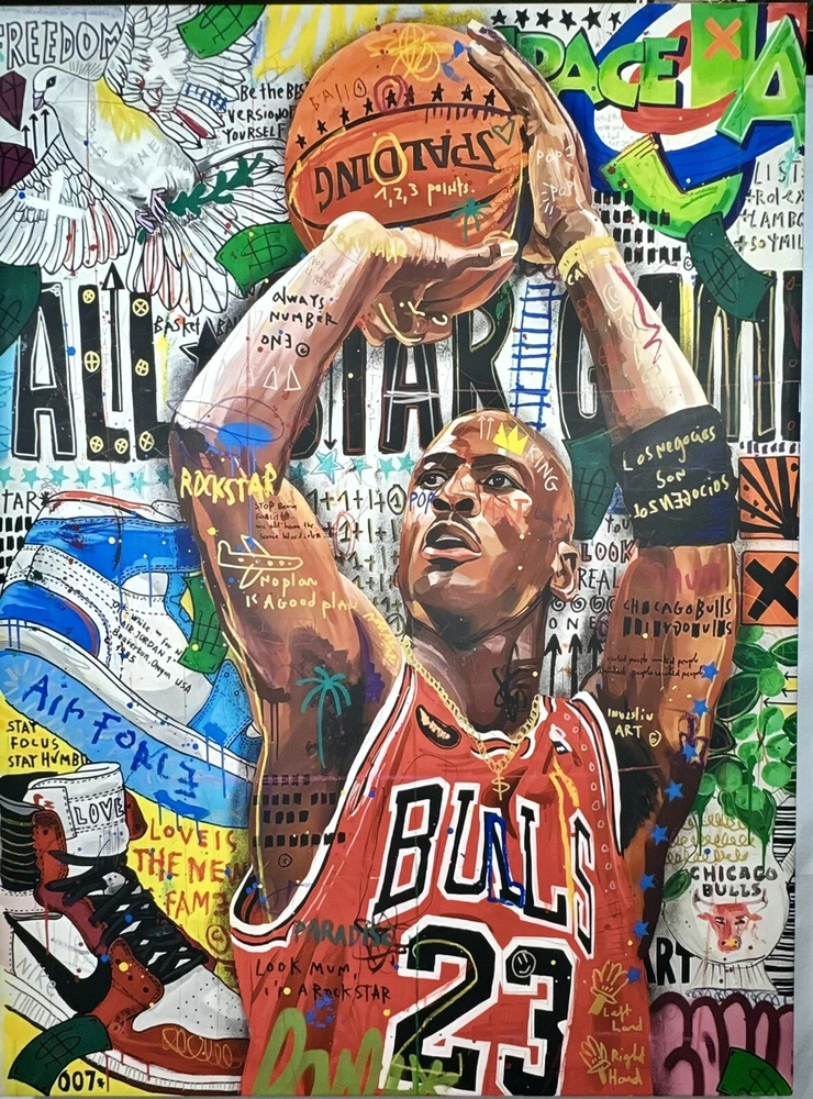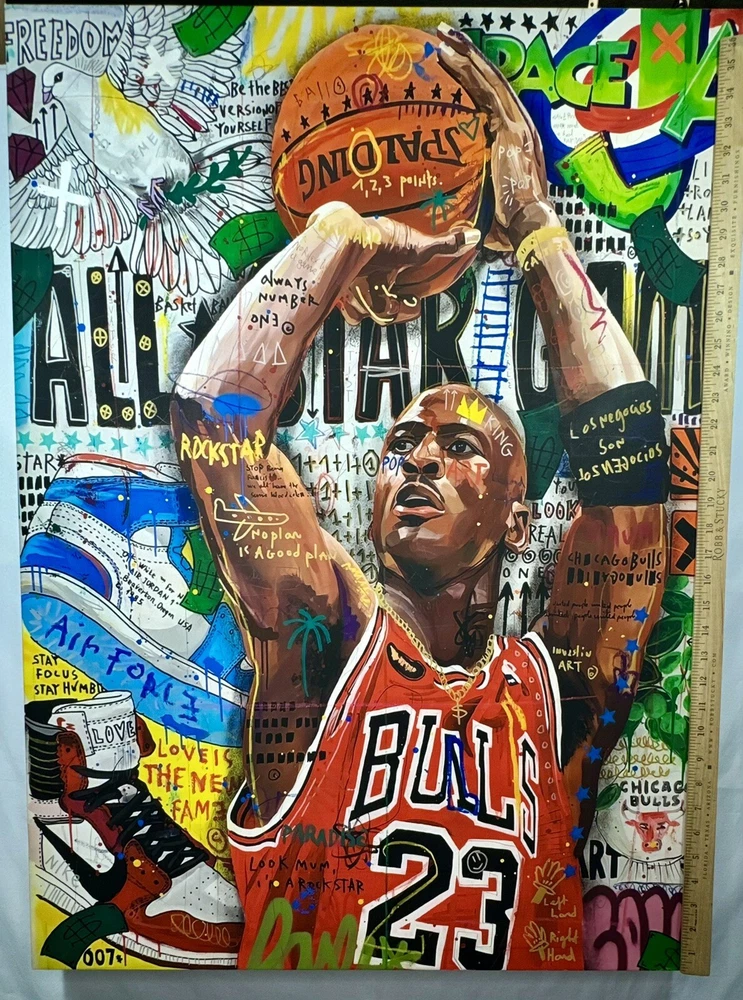 Subject: Street Art, modern art, movie, pop art, Michael Jordan Year of Production: 2021 Item Height: 37 in Material: Canvas, wood frame, mounting kit Features: certified wood, Mounting kit, Framed, Matted Time Period Produced: 2020-Now Production Technique: canvas printing Size: Large Item Length: 37 in Type: canvas Style: Modern, movies, street art Theme: Movies, cartoon, modern art, pop art Culture: modern art Original/Licensed Reprint: Licensed Reprint Item Width: 28 in