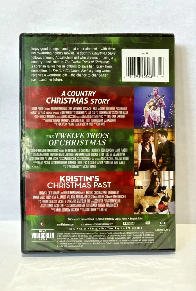Get into the holiday spirit with the Lifetime Triple Feature Christmas DVD. This DVD set is perfect for anyone who loves TV drama and holiday-themed movies. Released in 2013 by A&E Home Video, this DVD set is formatted for easy viewing and has never been opened. With a sub-genre of holiday-Christmas live action, this DVD set is sure to become a favorite in your collection. Don't miss out on the chance to own this amazing DVD set. Lifetime Movies Include: A Country Christmas Story The Twelve Trees Of Christmas Kristin’s Christmas Past
