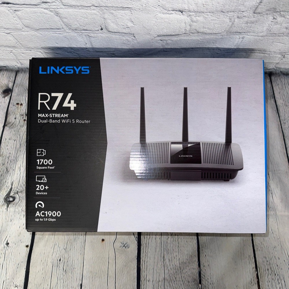 NEW! Linksys R74 Max-Stream Dual Band WiFi 5 router. Features: Web browser setup Set up using your laptop, computer, smartphone, or tablet. No CD required. Up to 1.9 Gbps data transfer speed Ensures fast, efficient operation. 3 high-performance antennas Enable enhanced performance. MU-MIMO technology MU-MIMO gives every compatible device its own dedicated full-speed Wi-Fi connection so that multiple devices can connect at the same time without slowing down the network. 1 USB 3.0 port Allows you to connect a printer and enjoy 3G and 4G file sharing. Parental control Lets you automatically block specific content on connected devices. Seamless roaming Move freely in and around your home without dropping the Wi-Fi signal. Gigabit Ethernet connectivity Offers a high-speed wired network connection. Linksys Smart Wi-Fi Access and control your home network from anywhere with the Linksys Smart Wi-Fi. App LED indicators Make it easy to monitor the status of your network. Advanced security Safeguard your network with wireless WPA2 encryption and an SPI firewall. Beamforming technology Optimizes performance and reduces interference by focusing a wireless signal to connected devices. PC system requirements Microsoft Windows 7, 8, or 10. New in box!