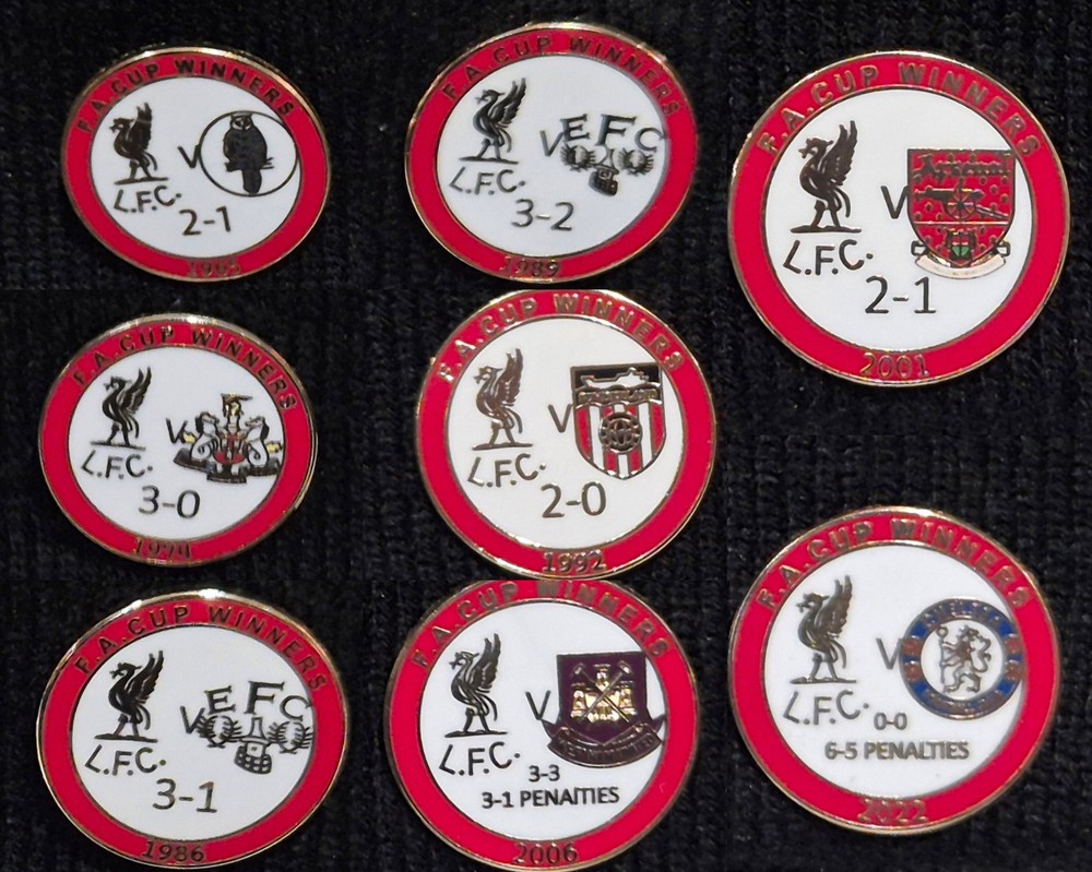Liverpool Pin Badge - Set of 8 Badges Celebrating Each FA Cup Win