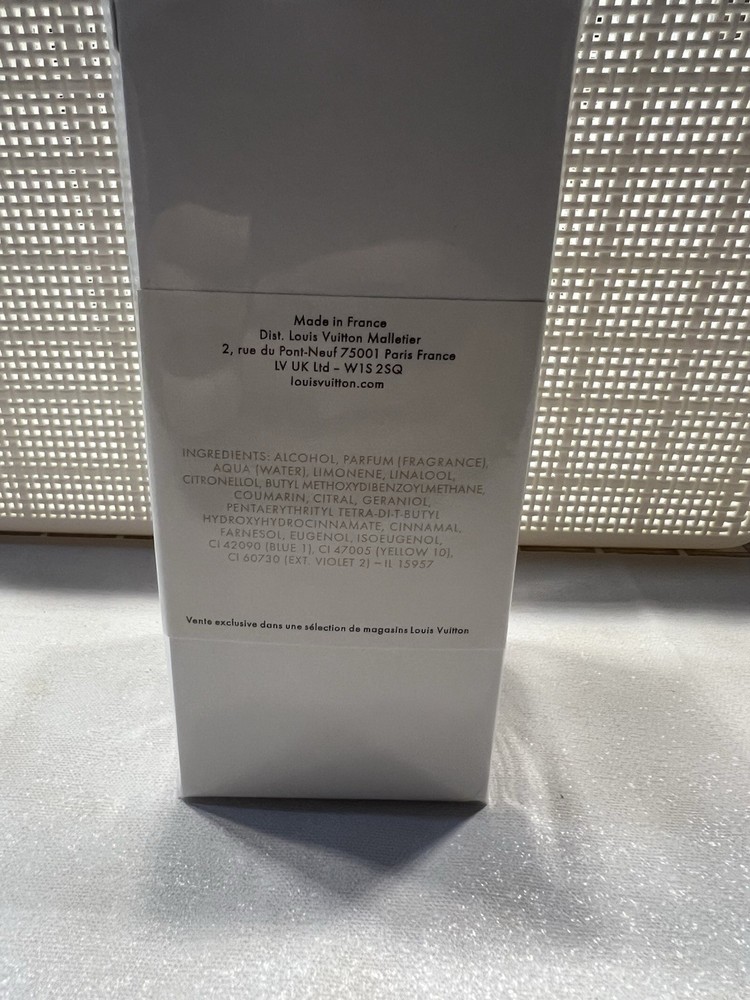 The product is a limited edition Louis Vuitton Eau de Parfum called Imagination, in collaboration with designer Sun Yitian. It comes in a size of 3.4 fl oz with a spray formulation. The fragrance is brand new and sealed, making it a rare and collector's item that is sold out quickly. This exclusive scent combines the luxury and creativity of Louis Vuitton with the unique vision of Sun Yitian, offering a fragrance experience that is both luxurious and memorable.