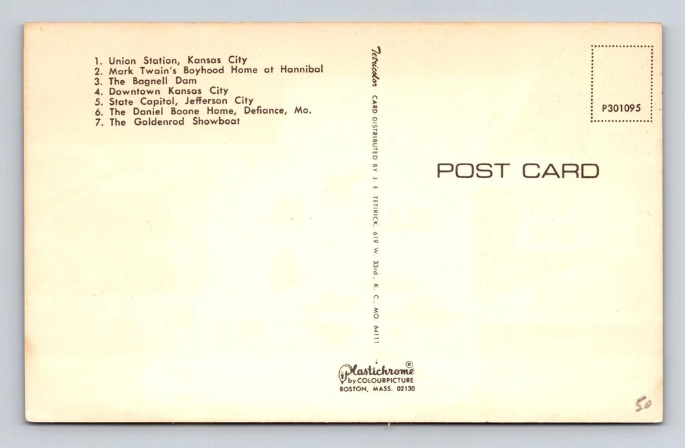 Unit of Sale: Single Unit Country/Region of Manufacture: Unknown Subject: Cities & Towns Type: Printed (Lithograph) Country: USA Era: Vintage Postage Condition: Unposted Theme: Cities & Towns City: Missouri Region: Missouri Original/Licensed Reprint: Original
