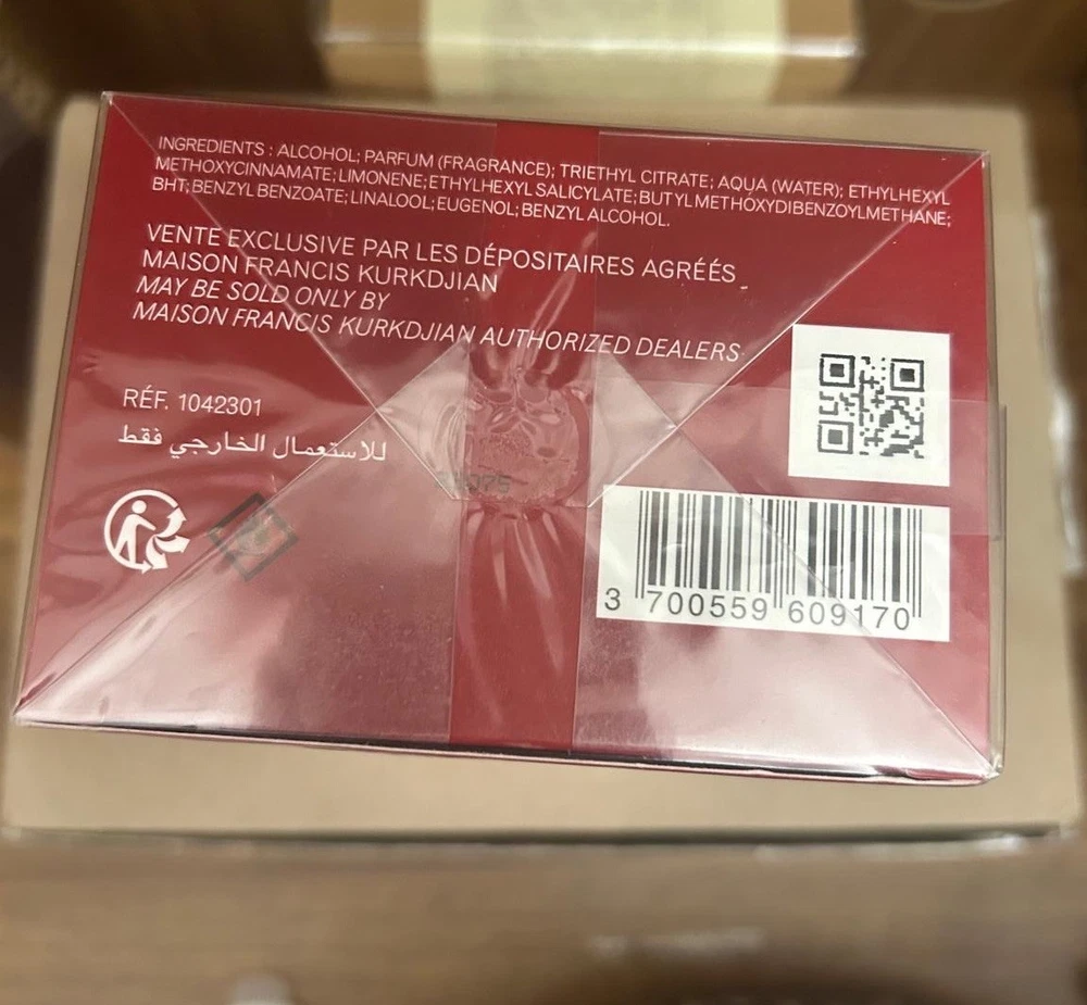 Formulation: Spray Fragrance Name: Baccarat Rouge 540 Brand: Maison Francis Kurkdjian Country of Origin: France Type: Extrait De Parfum Volume: 6.80oz