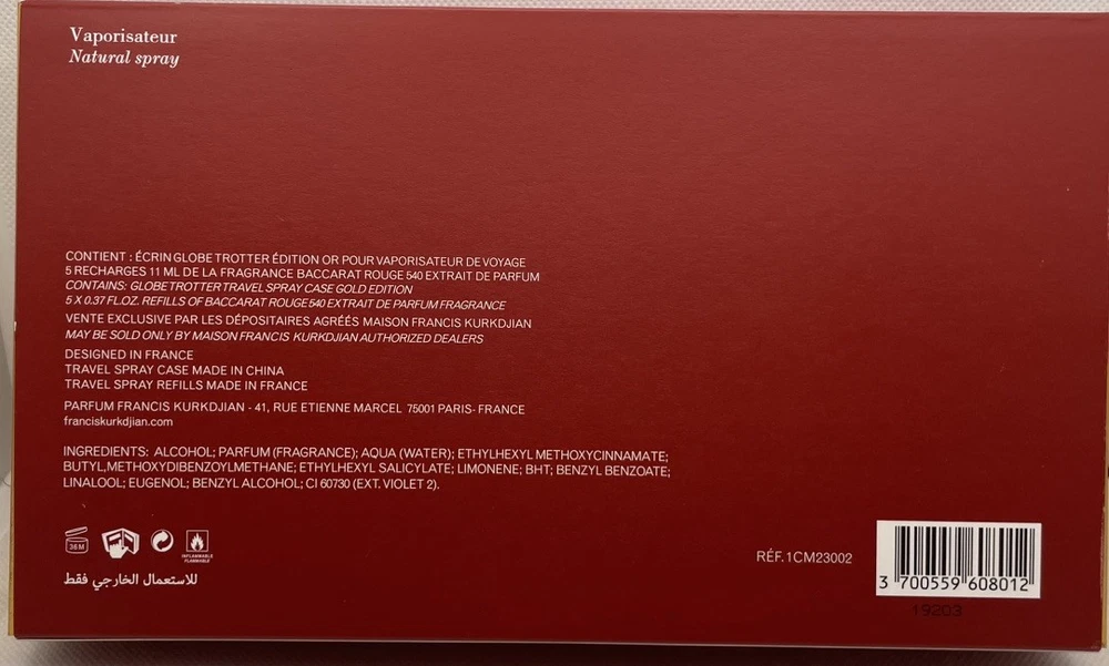 - Maison Francis Kurkdjian Baccarat Rouge 540 Extrait is a luxurious fragrance with a size of 11 ML each 1.9 oz total divided into 5 bottles of 11ml each. - 5 Additional 1.5 ML Samples of MFK 540 EDP included also as a Gift!! - This unisex fragrance is known for its subtle yet sophisticated scent, making it suitable for various occasions. Made in France by the prestigious brand Maison Francis Kurkdjian, this fragrance is perfect for those who appreciate high-quality perfumes in travel size, discovery sets, or gift sets. The spray formulation ensures easy application, while the elegant packaging adds a touch of refinement to any fragrance collection.