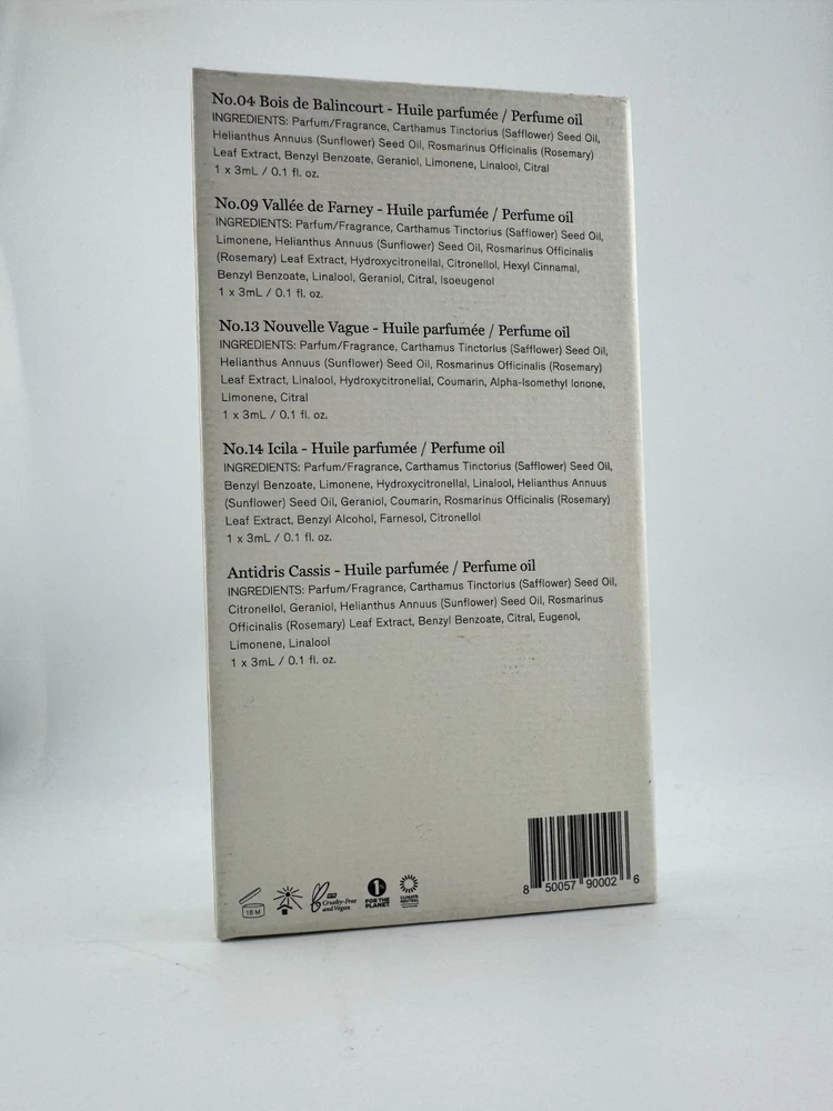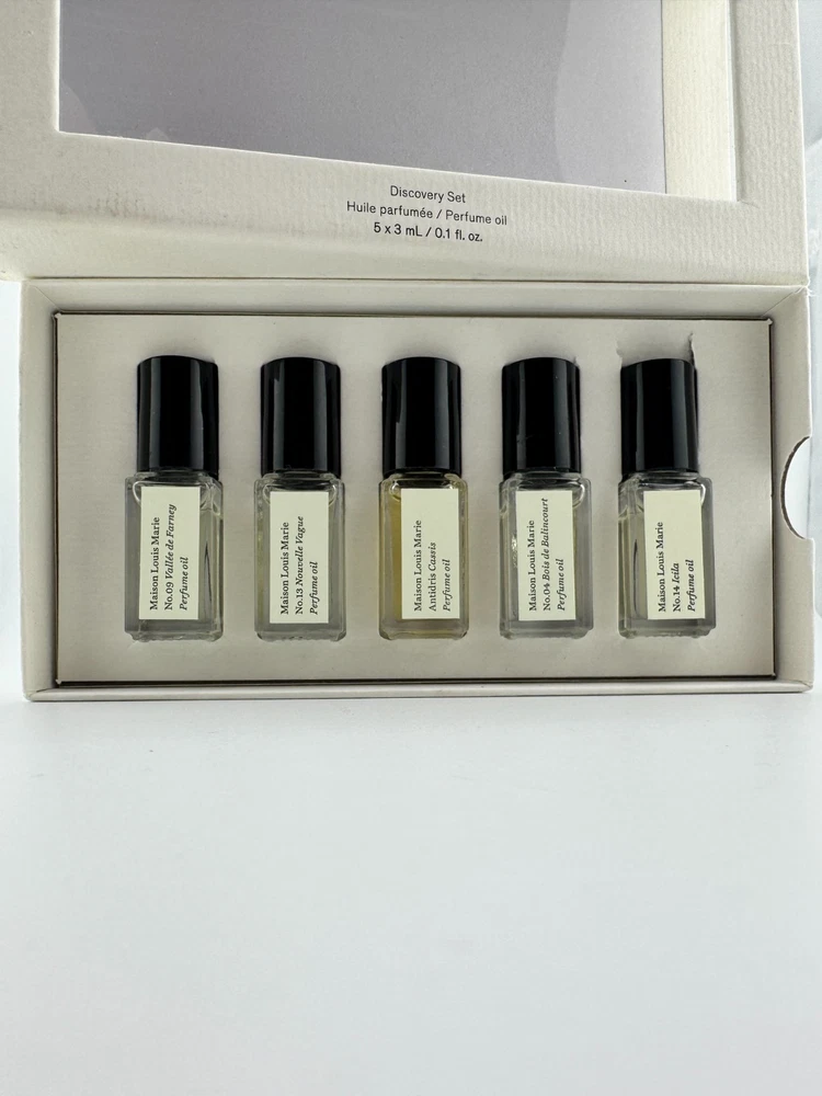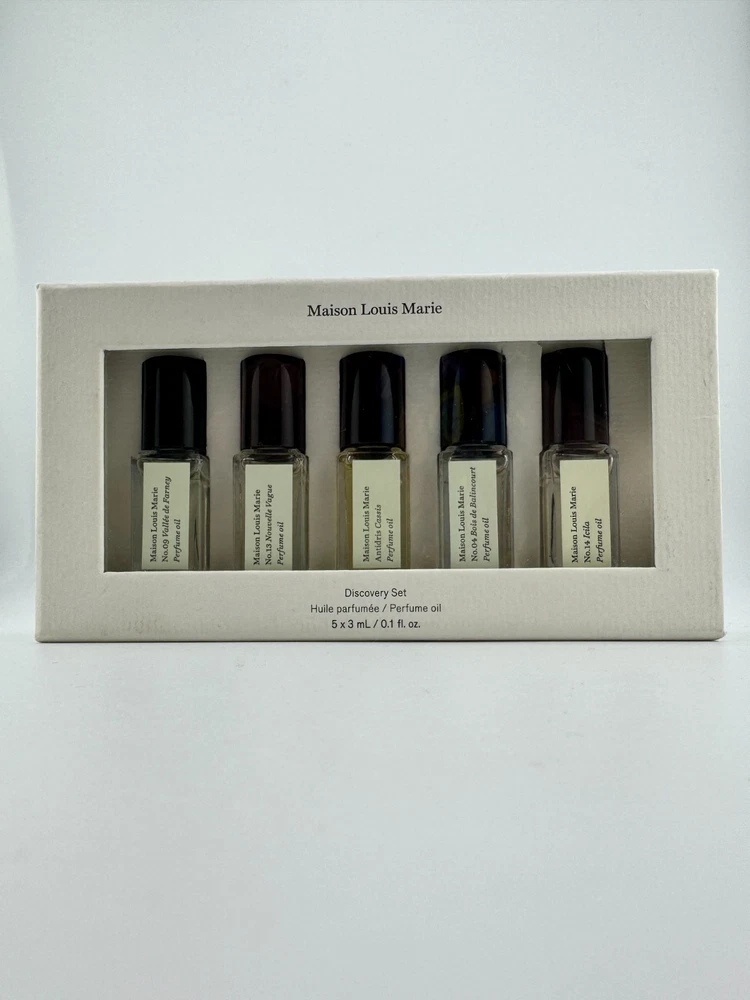 🌿 Maison Louis Marie Discovery Set 🌿 | 5x Mini Perfume Oils | Vegan, Clean, Luxury Scents Try five signature scents from the beloved niche fragrance house Maison Louis Marie! This elegant discovery set includes five 3ml perfume oils—perfect for travel, gifting, or finding your signature scent. 🧴 What’s Included: Each 3ml / 0.1 fl oz mini roller bottle contains: No.04 Bois de Balincourt – Warm sandalwood, cedarwood, vetiver. A cult favorite with Le Labo Santal 33 vibes. No.09 Vallée de Farney – Citrus, woody, and green—a fresh and vibrant unisex fragrance. No.13 Nouvelle Vague – A modern floral with coconut, bergamot, and vanilla. No.14 Icilia – Soft and creamy florals, rose, and musk. Antidris Cassis – Fruity and clean with blackcurrant, apple, and white musk. ✨ Product Details: Brand: Maison Louis Marie Type: Perfume Oil Discovery Set Size: 5 x 3ml (0.1 fl oz) rollerball bottles Condition: New / Unused Made with natural, vegan, and cruelty-free ingredients Clean beauty approved 🌱 🎁 Perfect for: Gifting | Sampling | Travel | Everyday wear