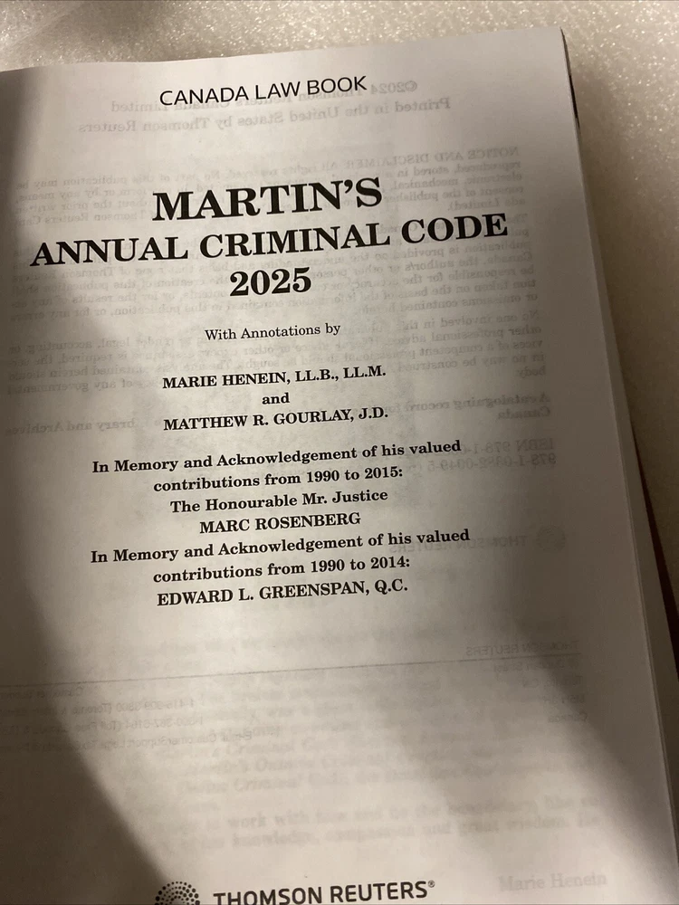 Martin's Annual Criminal Code, 2025 | Judicial Edition *Selling As IS*