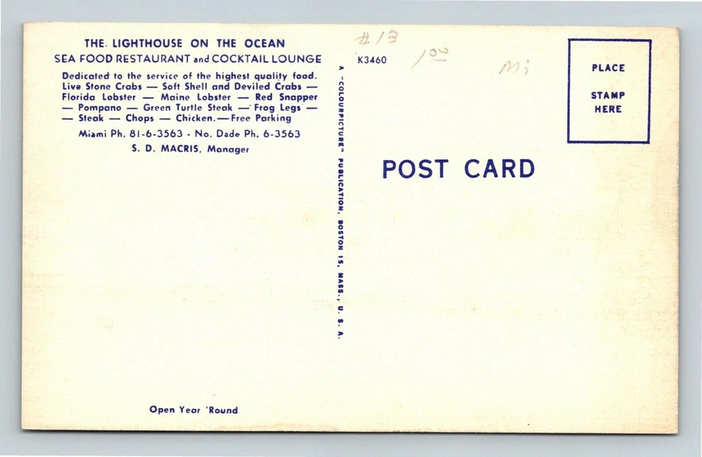 Miami, FL-Florida, Lighthouse On The Ocean Restaurant, Vintage Postcard