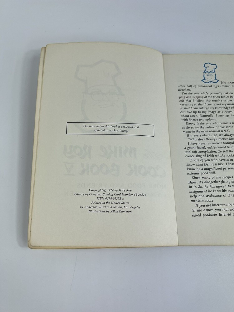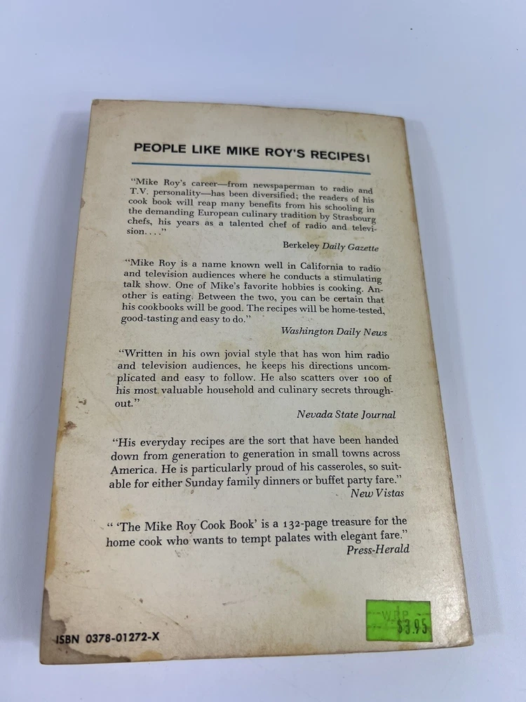 Country/Region of Manufacture:United StatesNarrative Type:NonfictionLanguage:EnglishPersonalize:NoIntended Audience:AdultsBook Series:Mike RoyISBN:NAAge Level:AdultsNumber of Pages:144Inscribed:NoGenre:CookbooksVintage:NoTopic:FoodOriginal Language:EnglishEdition:1974Author:Mike RoyType:CookbookFeatures:PBPublisher:Ward Ritchie PressSigned:NoEra:1970sgtin13:NAPublication Year:1974Format:PaperbackPersonalized:NoBook Title:The Mike Roy Cook Book VEx Libris:No